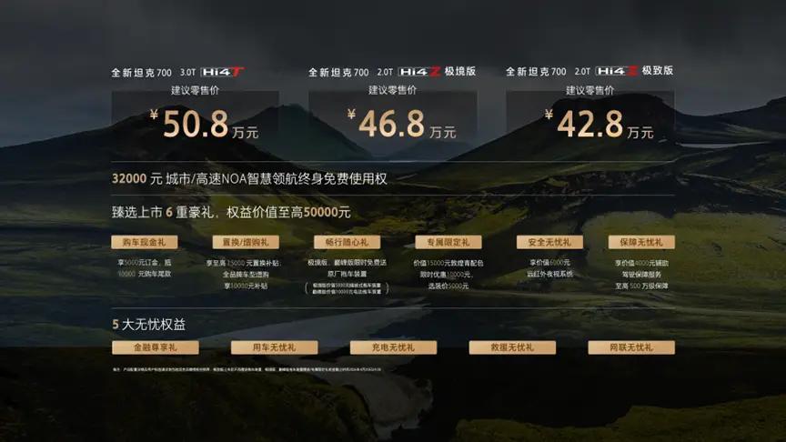 全新坦克700新时代新旗舰麒麟云中现,境启新人生。全新坦克700今天正式发布,42.8万起,直接解锁全域豪华SUV新体验,打破行业参数内卷困局,真正实现从卖产品到传递高阶生活方式的升级,每一处细节都尽显诚意。