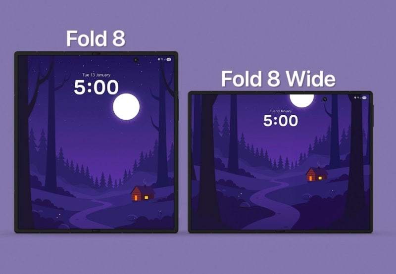 Galaxy Z Fold8 和 Galaxy Z Fold Wide 两款机型的尺寸对比(渲染图)