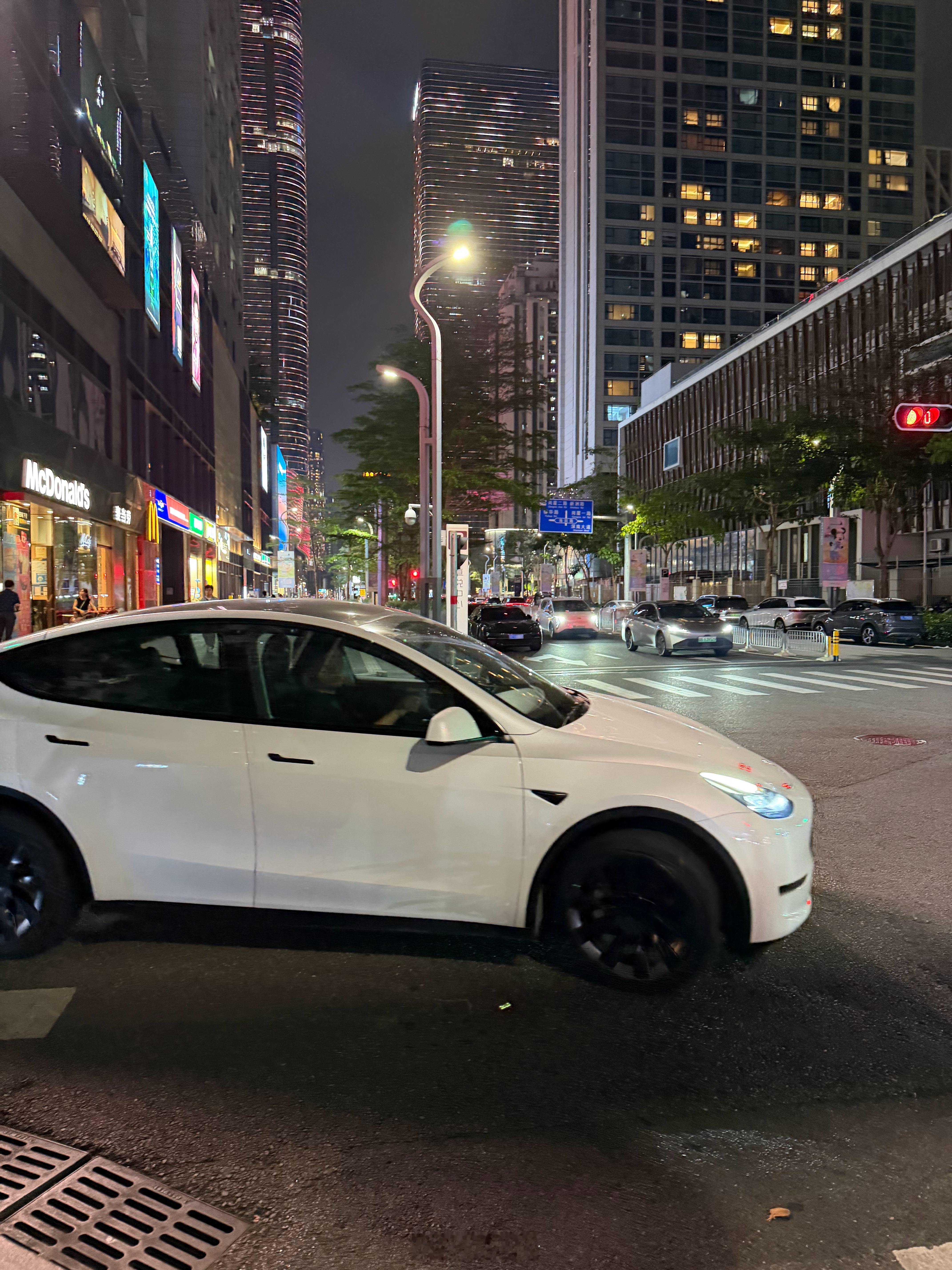 第一次在深圳见右舵特斯拉,白车配白牌,颜值真的高 深圳·卓悦中心东区