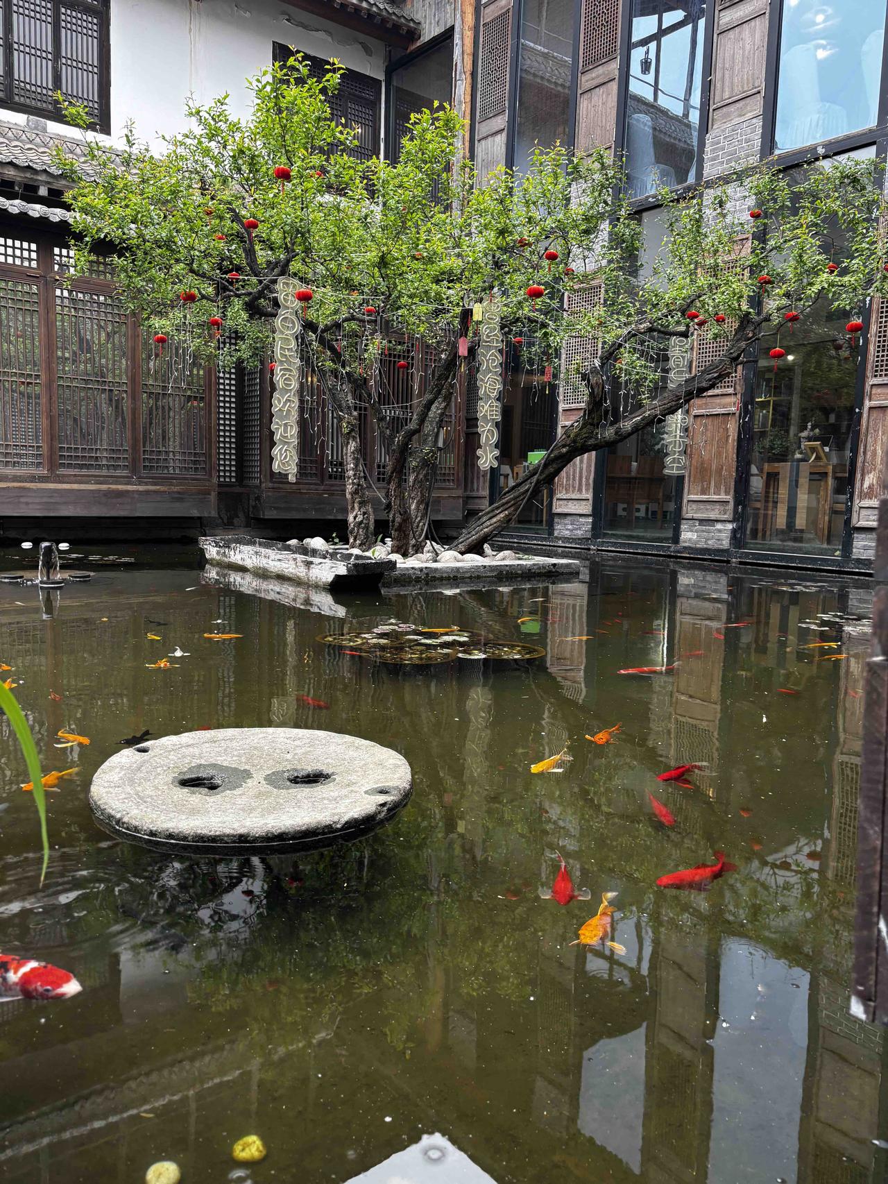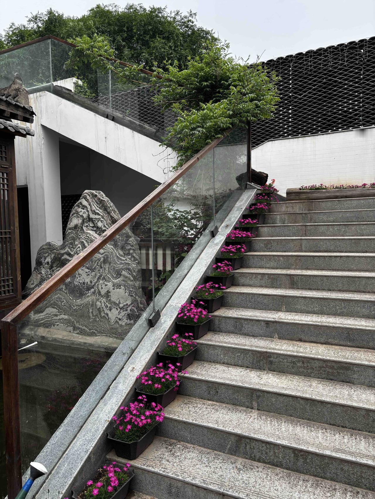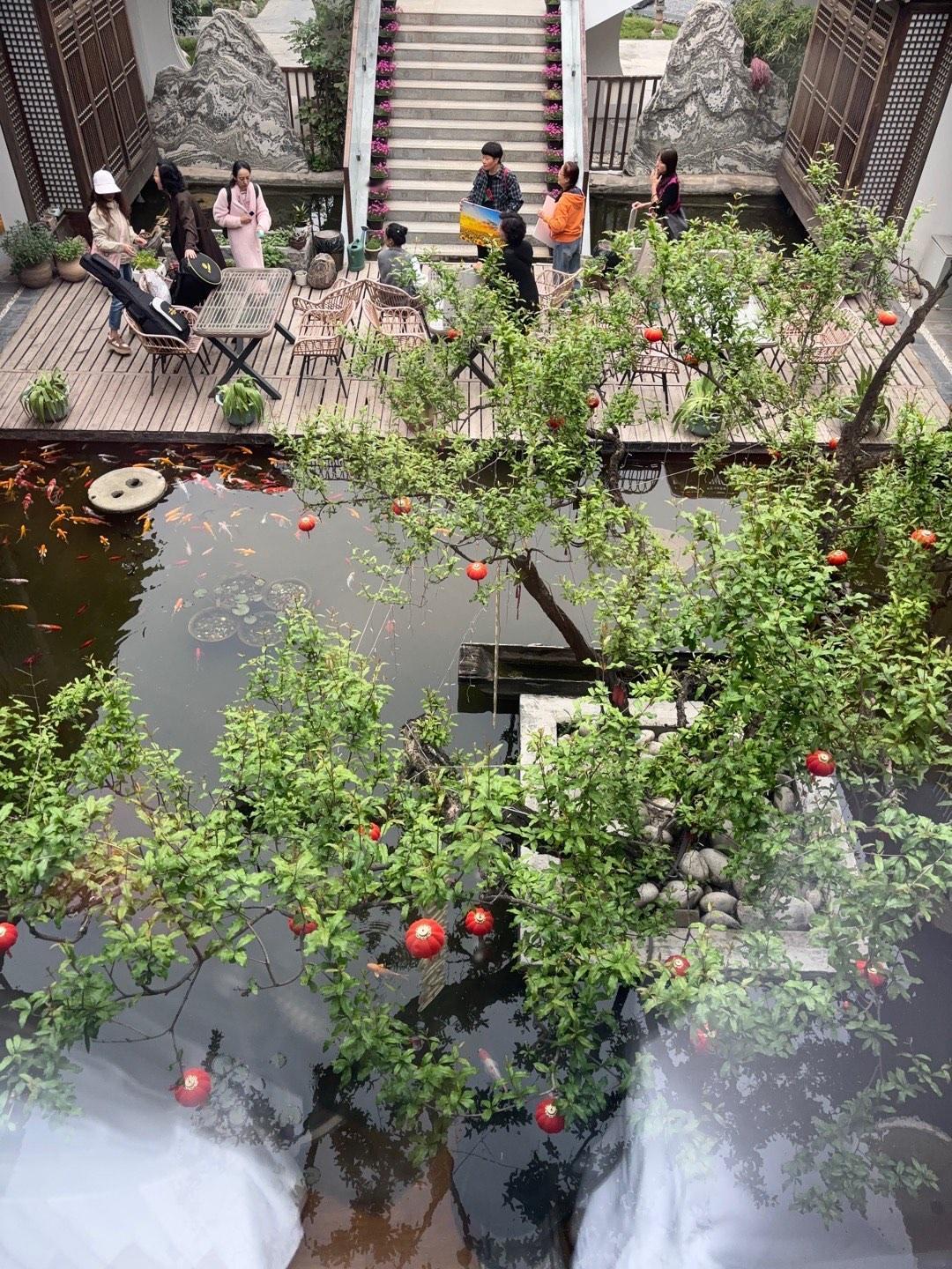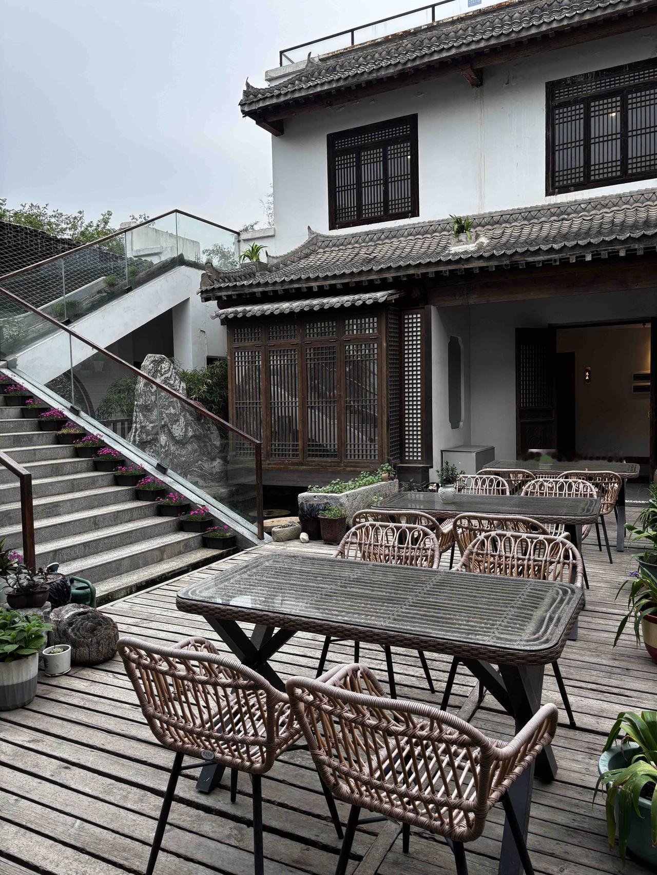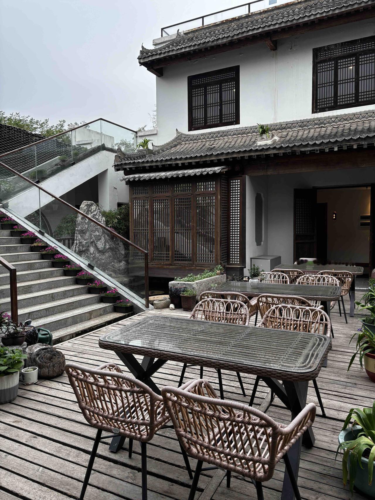 最惊艳的是二楼玻璃天台,踩着透明地板俯瞰水池,捧杯茶看檐角滴雨,什么烦恼都冲走了。餐厅取名"不盐而喻"也够绝,户外婚礼场地被石榴树包围,五月看红花十月摘果,街名"留街"更是暗藏留客的巧思。