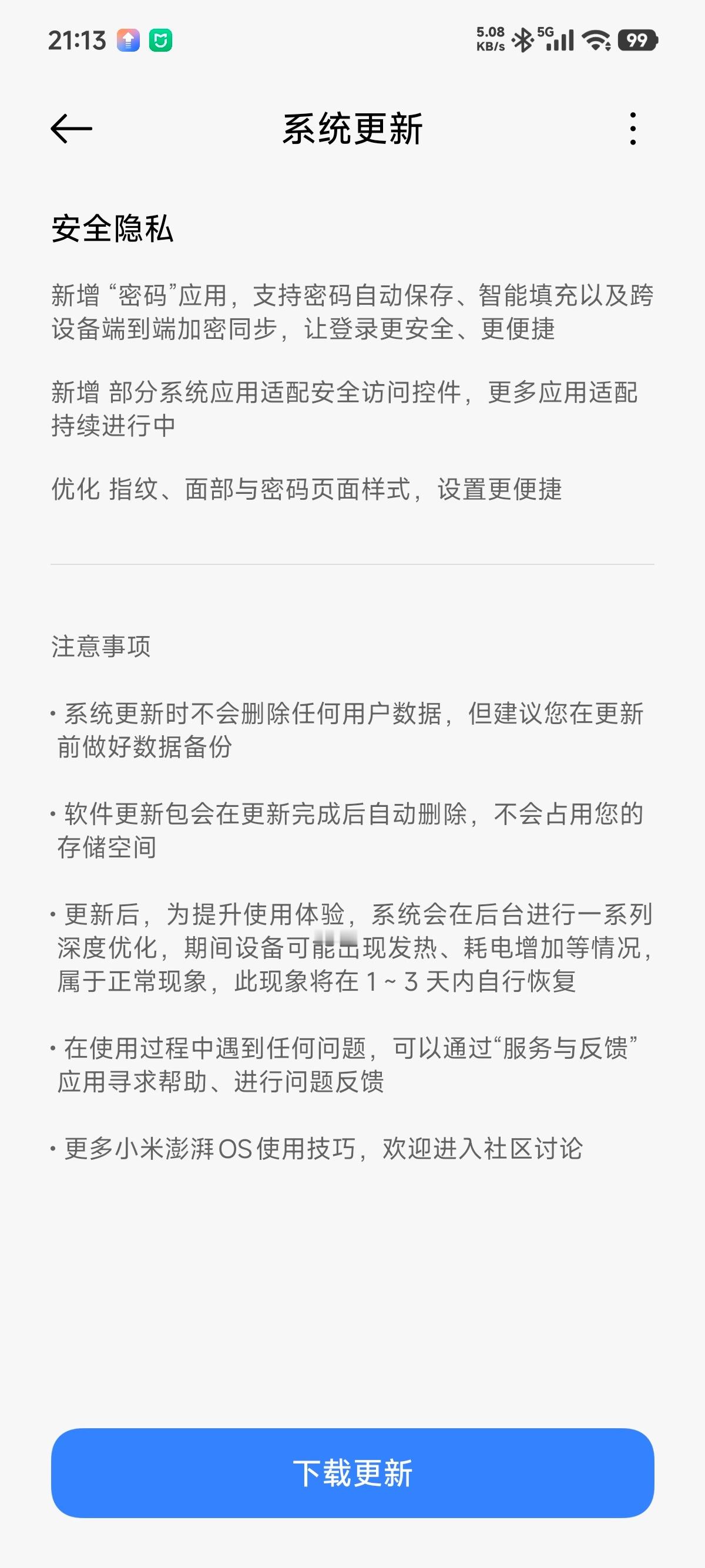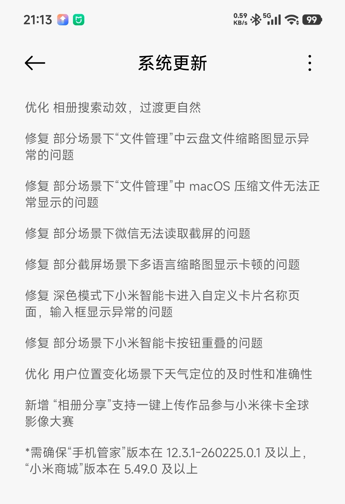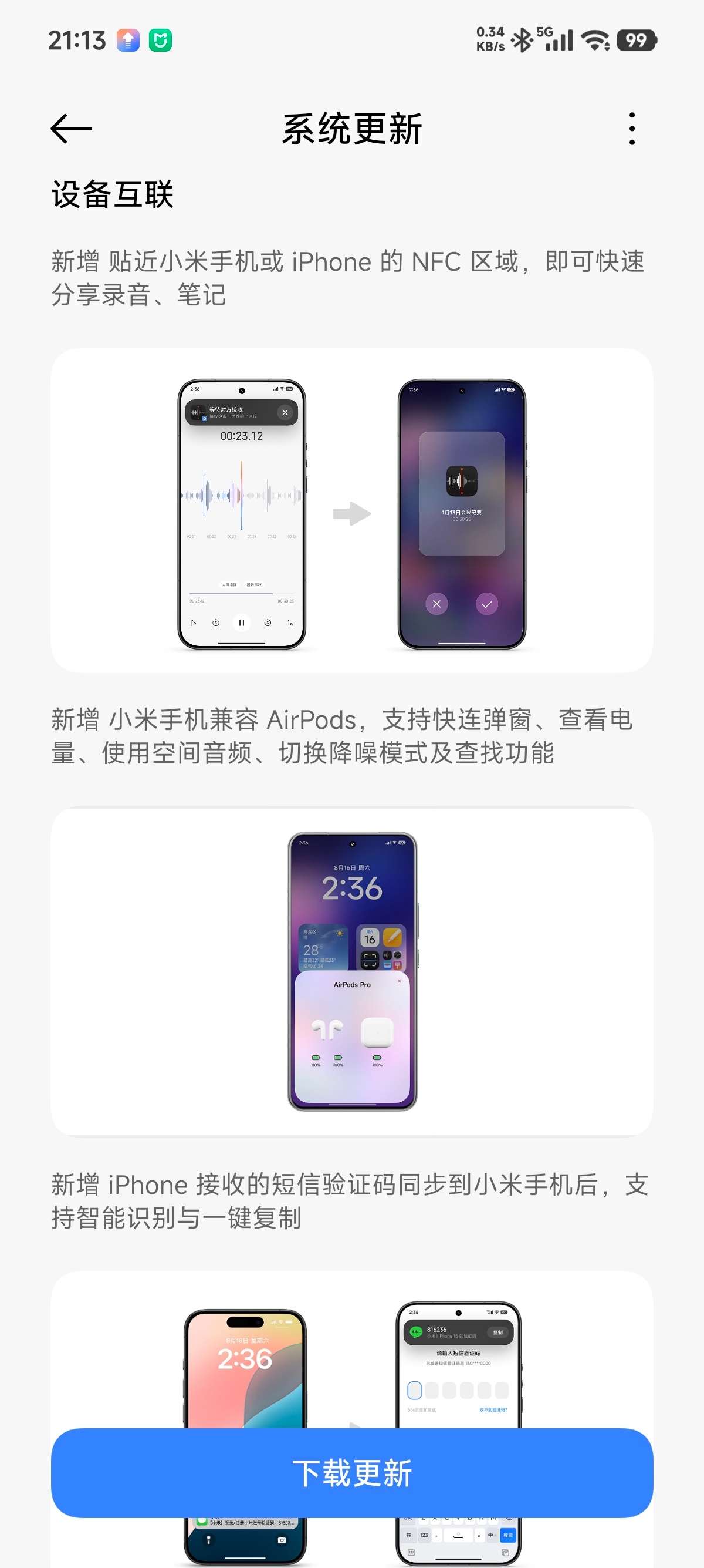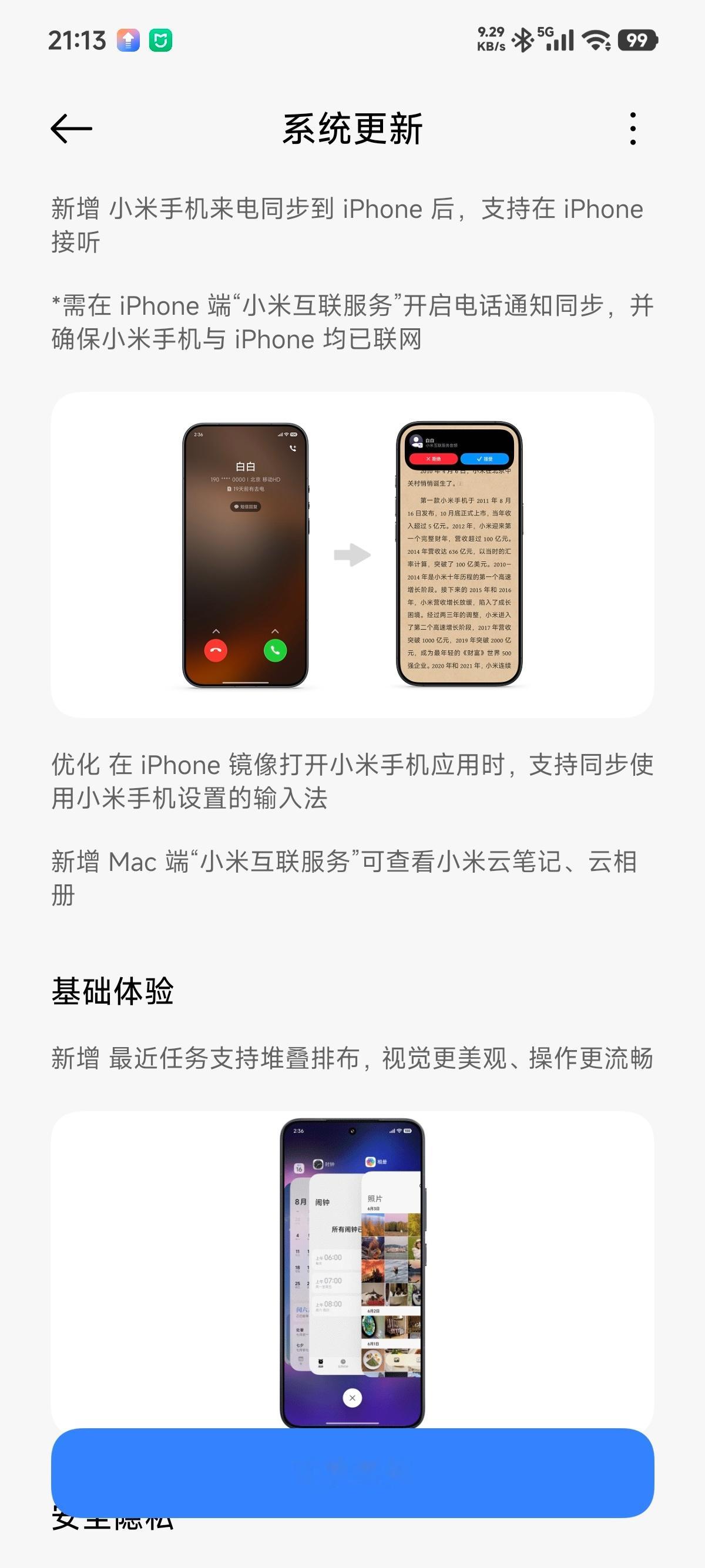 小米14收到最新系统版本升级:系统应用全面性优化;设备互联;基础体验;安全隐私。