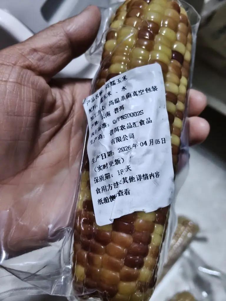 收到的宝贝包装很好,一斤的玉米有三个,日期是4月5号的保质期18天,三个我一顿就