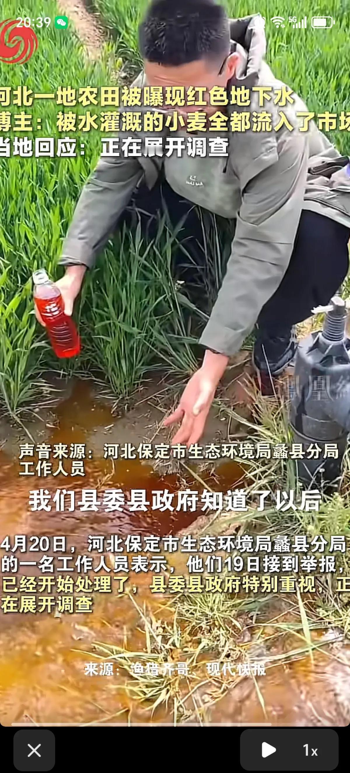 河北的家人们,你们吃到了“冰红茶”浇地的粮食了吗?很好奇长出来的小麦是不是红色的。环保博主“渔猎齐哥”发现河北保定蠡县留史镇周边农田的抽水井里,流出的地下水呈明显的红色/橙黄色,像浓茶一样,就像在用“冰红茶”浇地。