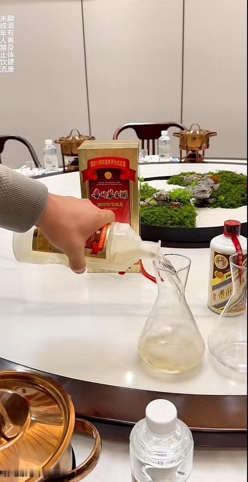 酒桌上这两瓶99年磨砂茅台,当年限量两万瓶,现在一瓶就顶普通人几个月工资。你看分酒器里那金黄透亮的酒液,那是二十多年岁月养出来的成色,每一滴都透着“硬通货”的底气,这酒见到就是缘分,更别说能喝到了。