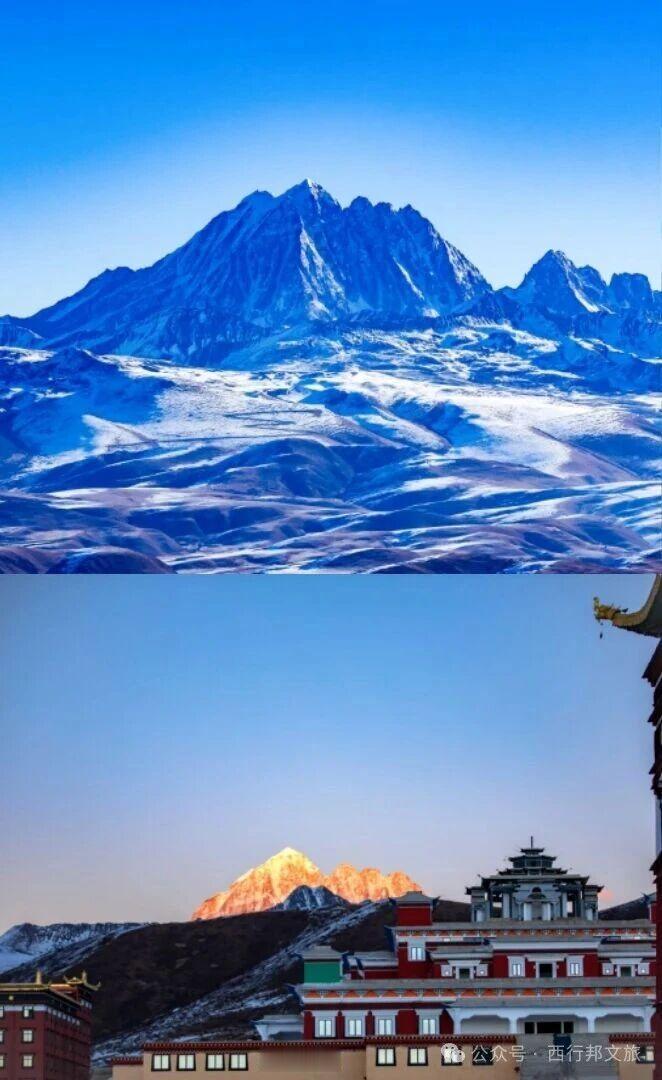 积雪未消的雪山脚下,万亩杜鹃与羊角花次第绽放;