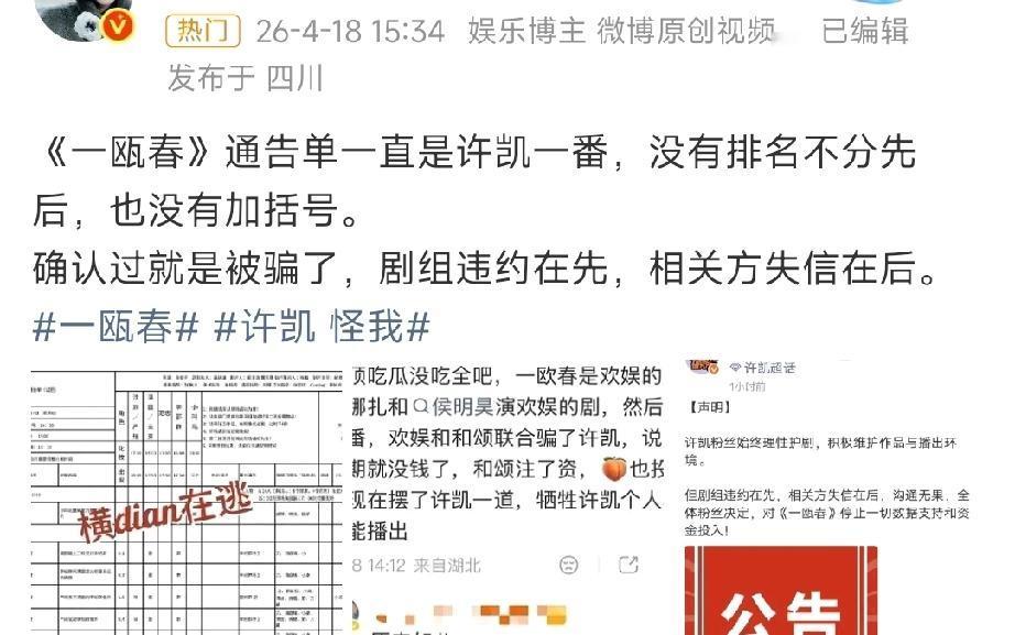 许凯粉丝说,剧组欺骗了许凯,通告单他一直是一番。