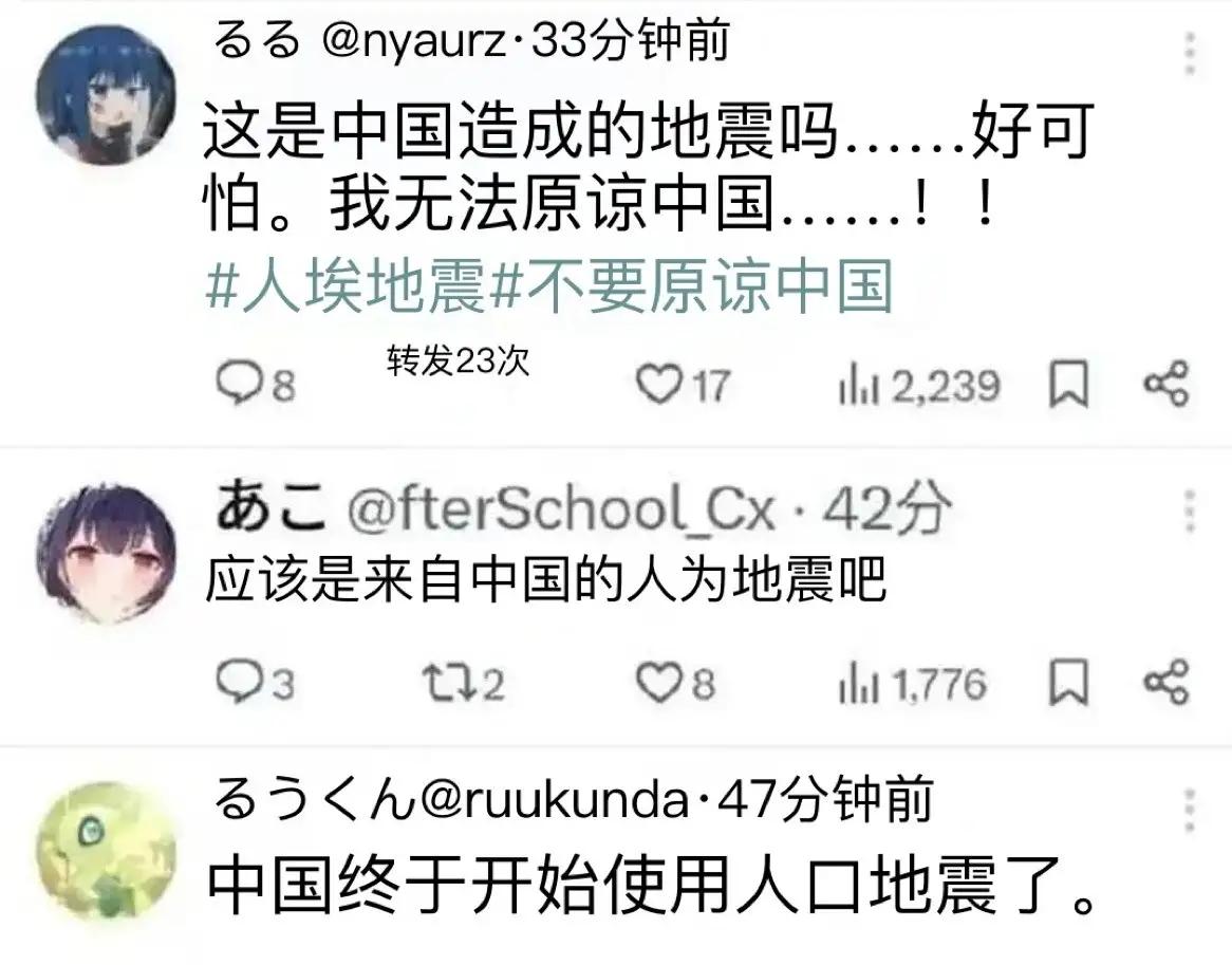 日本一地震就怪中国?这脑回路真该治治了。