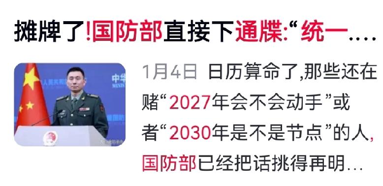 国防部重磅澄清:统一没有2027、2030时间表!所谓“攻台年份”全是博眼球的谣言,别被假信息带偏!