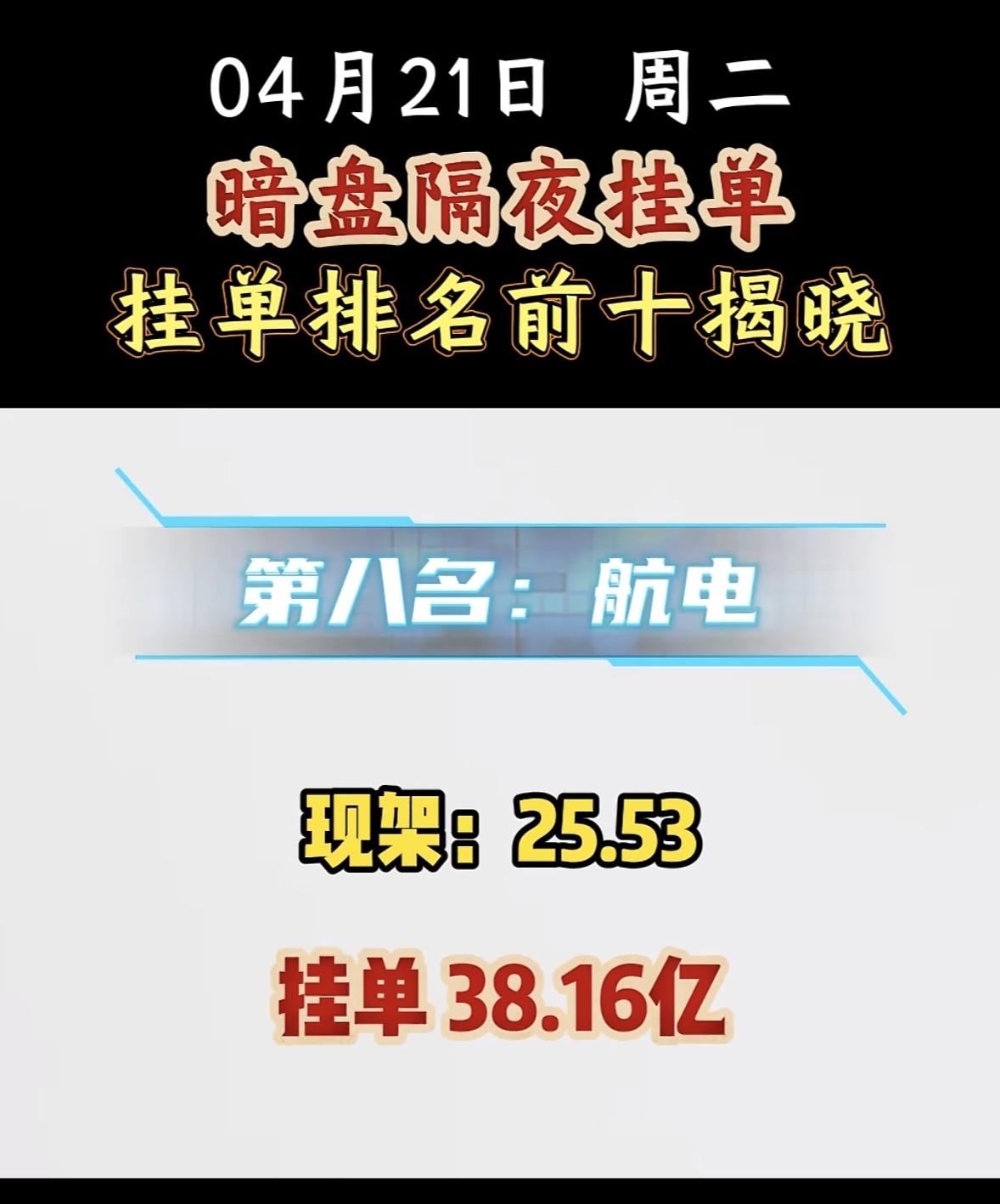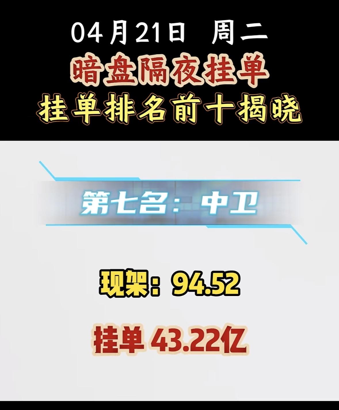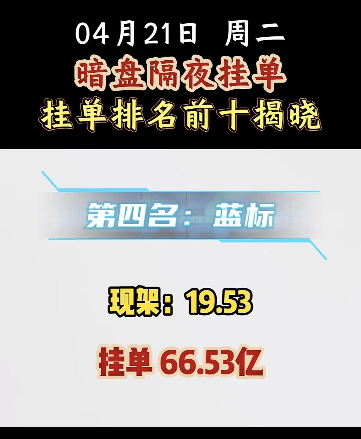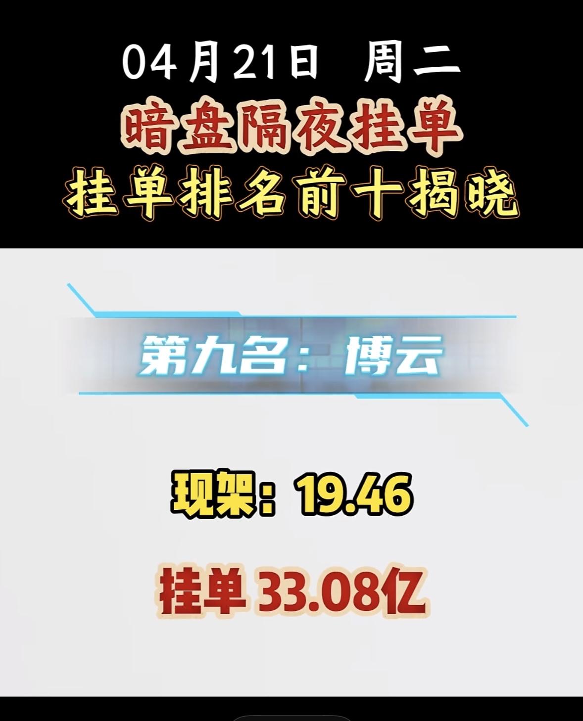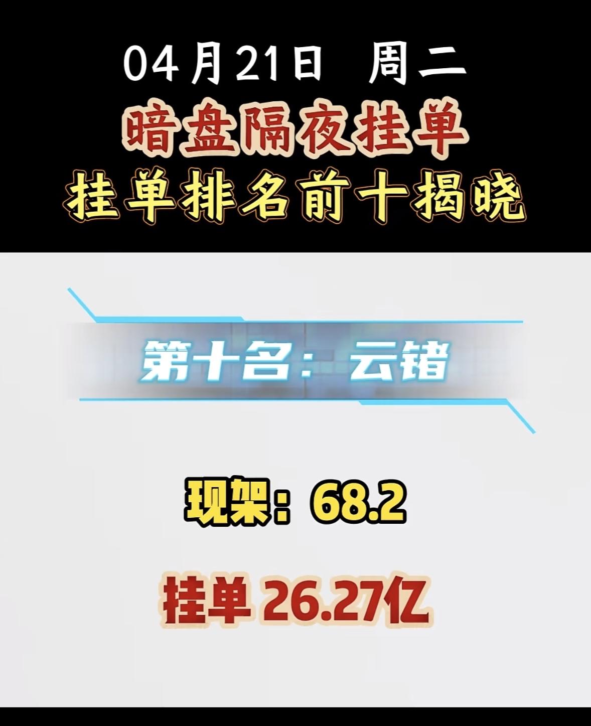 4月21日周二暗盘隔夜挂单排行榜揭晓