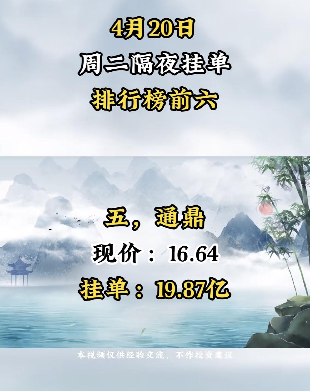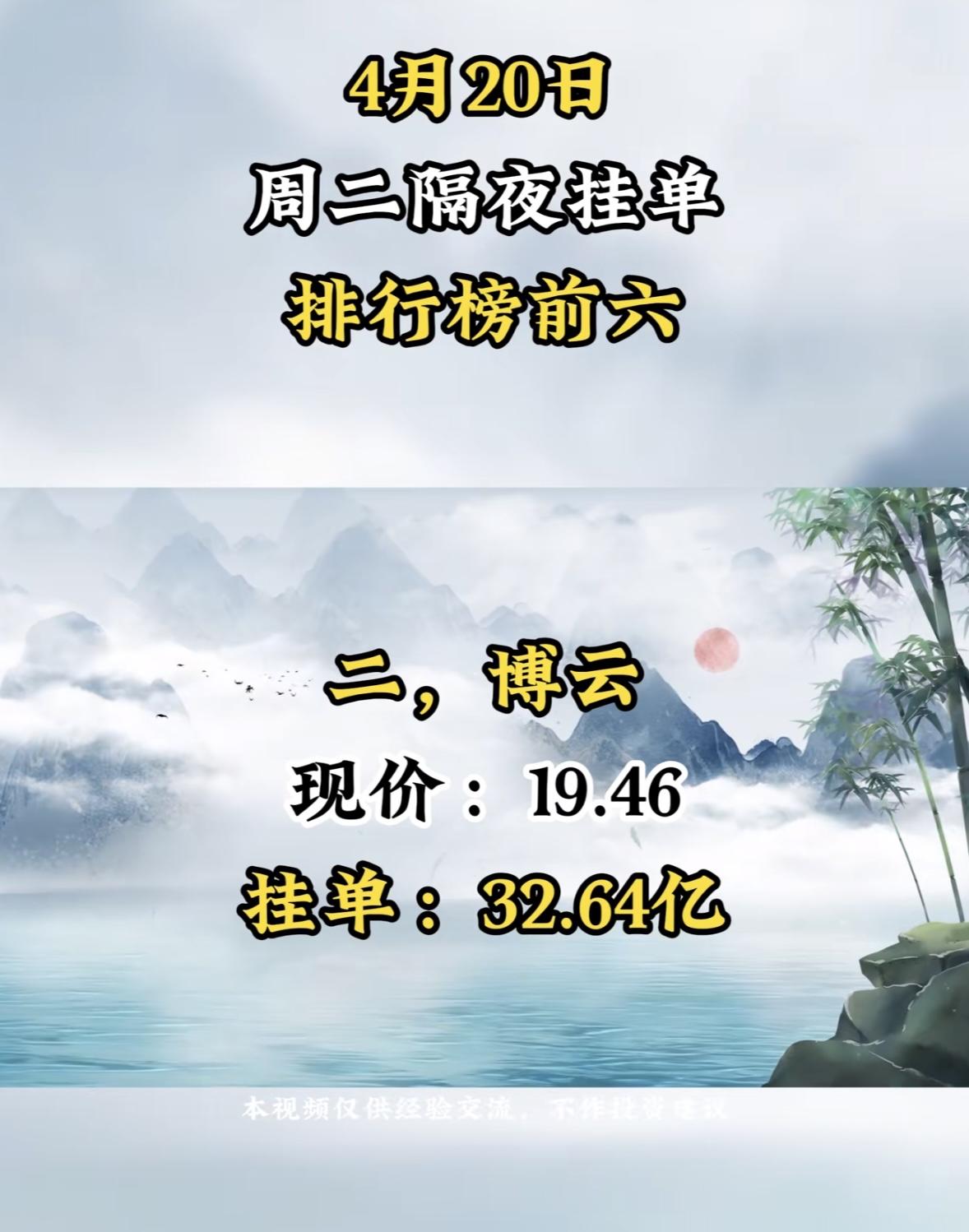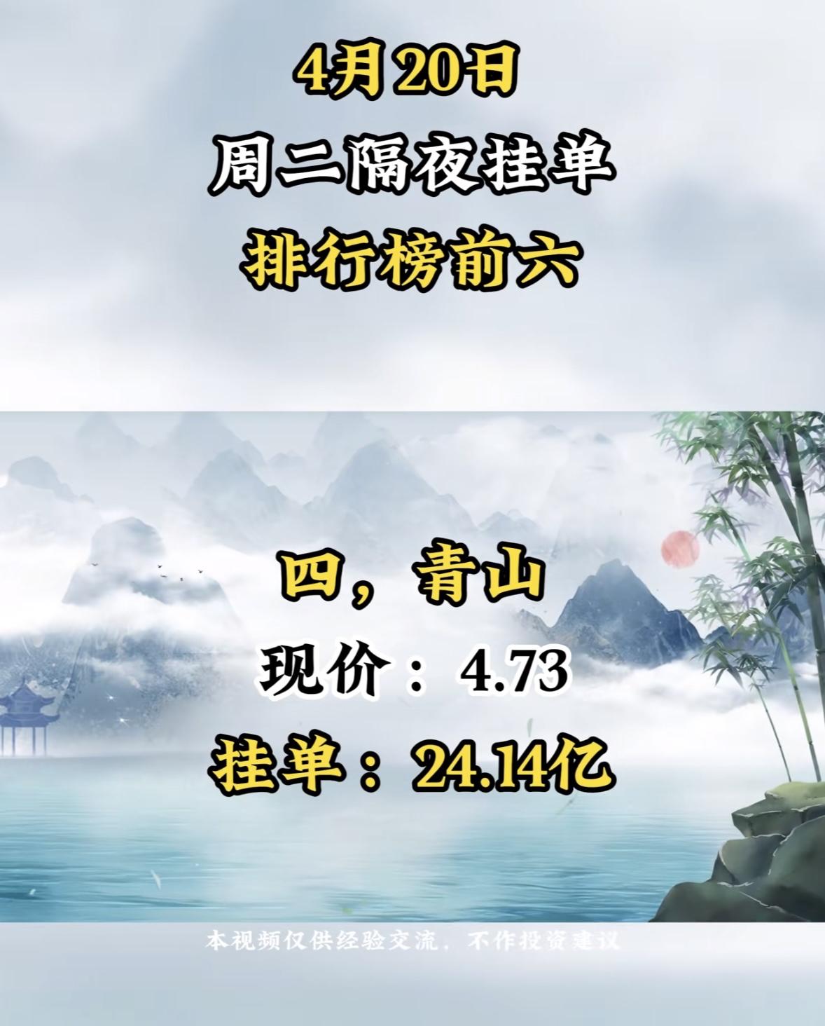 4月21日周二暗盘隔夜挂单排行榜出来啦。