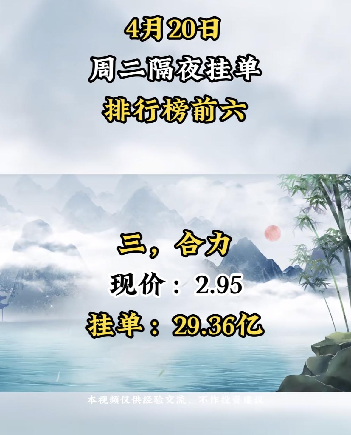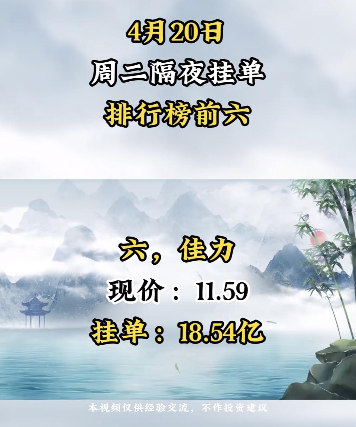 4月21日周二暗盘隔夜挂单排行榜出来啦。 佳力现价11.59,挂单竟达18.5