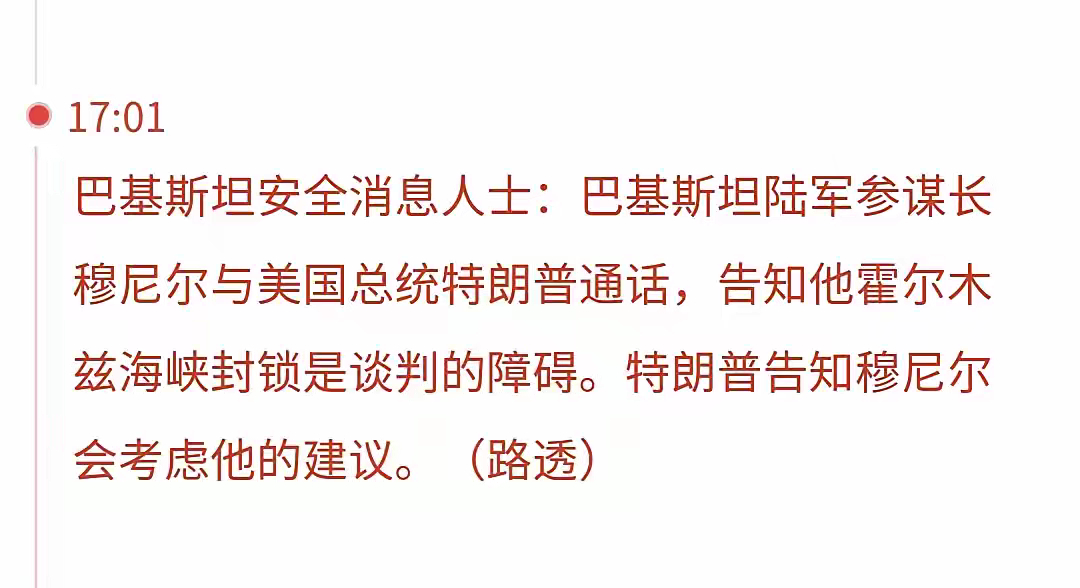 基金:利好消息就要来了今天,巴基斯坦陆军参谋长穆尼尔与美国总统特朗普通话,告诉他谈判的障碍是霍尔木兹海峡的封锁,特朗普说会考虑他的建议。(来源:路透)
