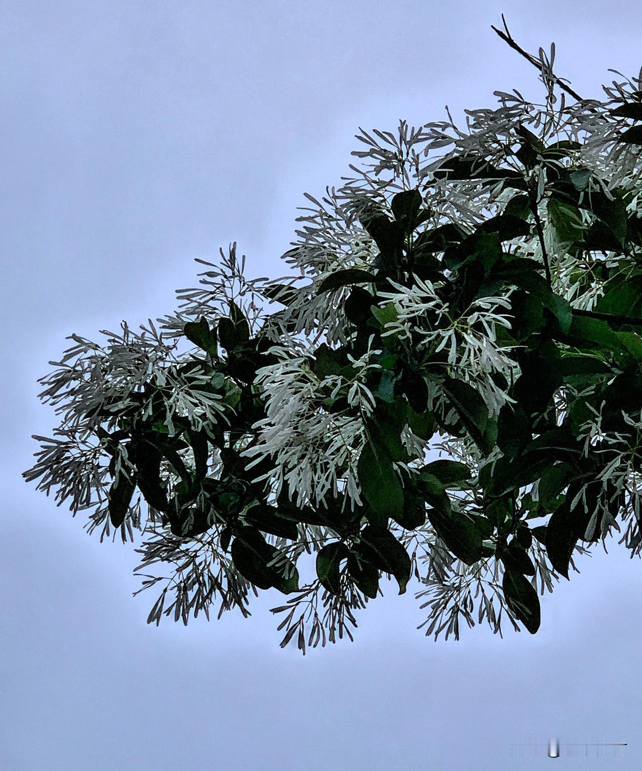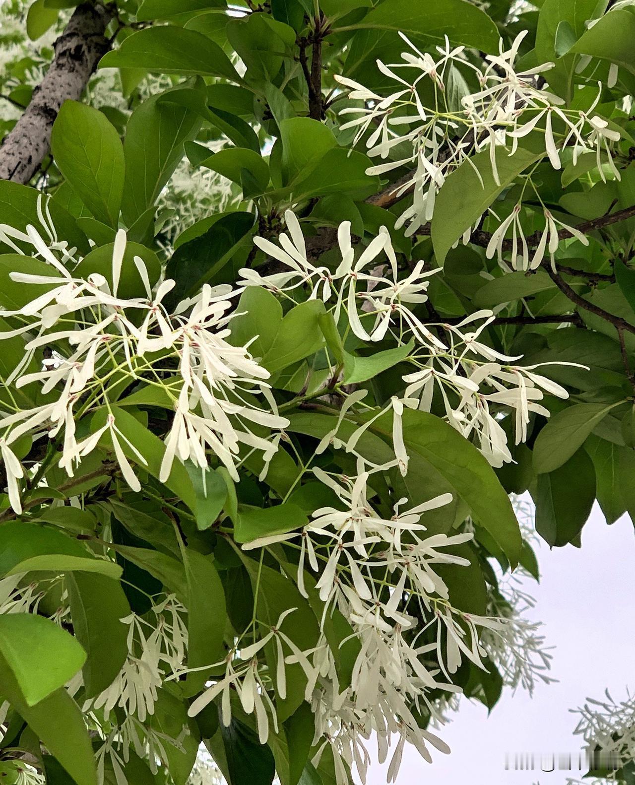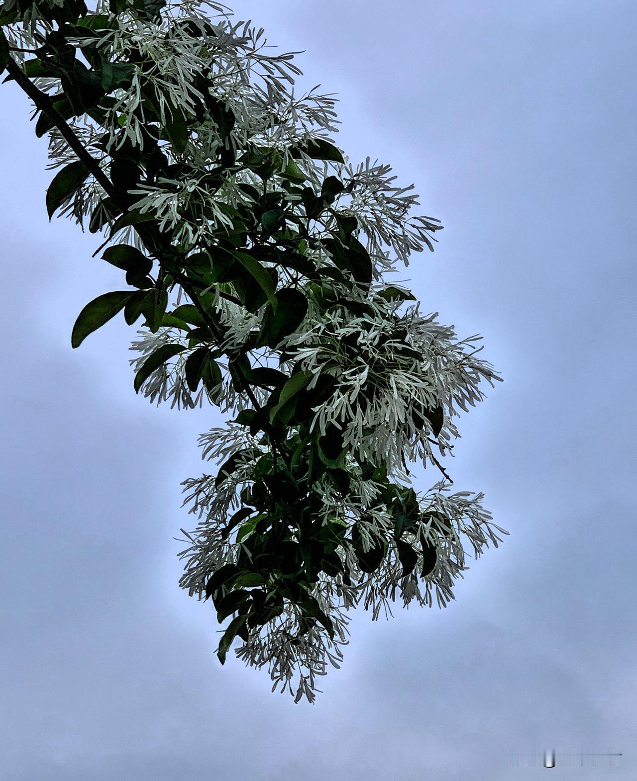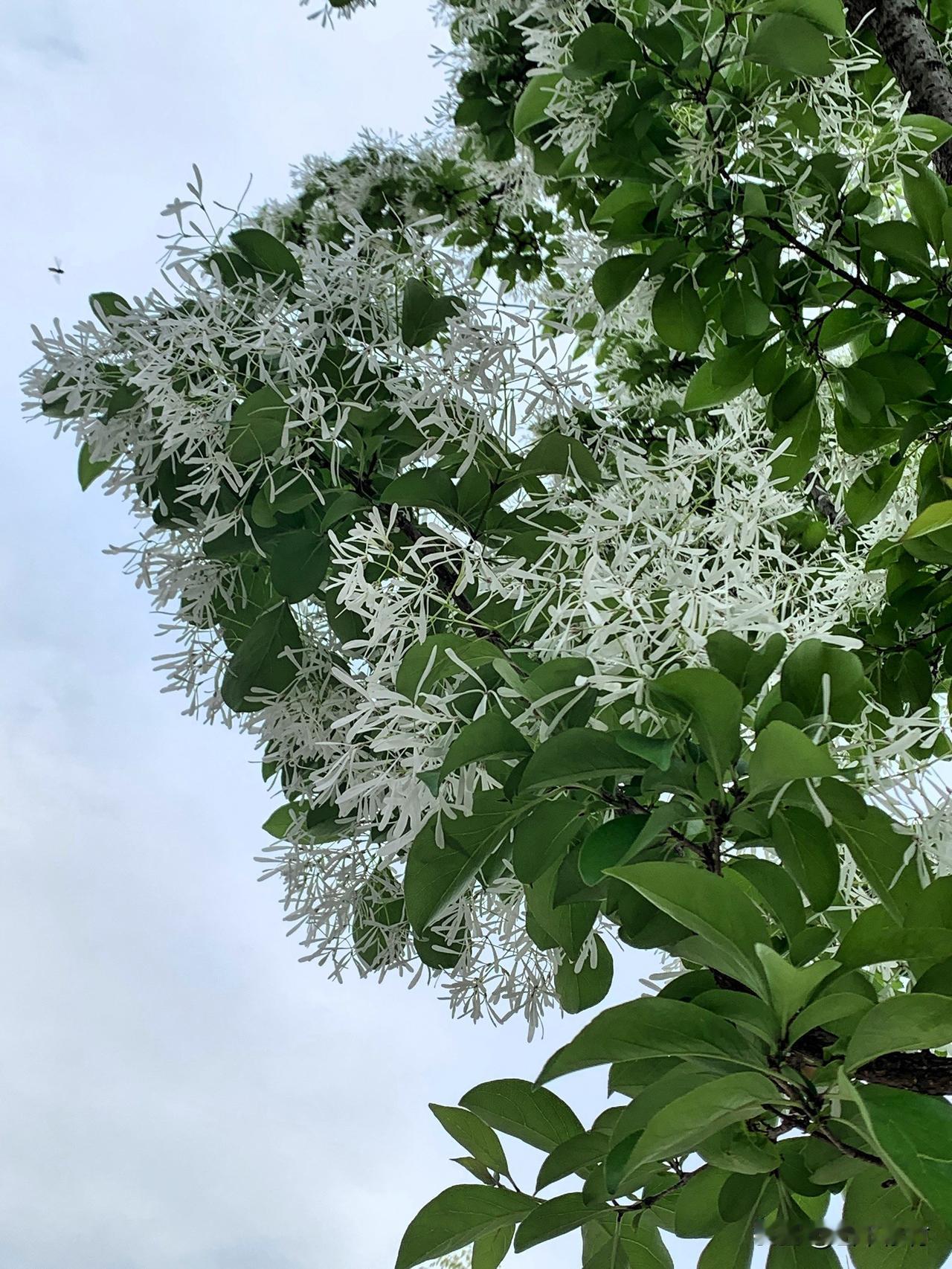 凑近细看,每一朵花都舒展着细长的花瓣,如丝如缕,轻盈灵动。阳光透过枝叶洒下,花瓣泛着温润的白,微风一吹,便轻轻摇曳,仿佛能听见花开的轻响。这树流苏,不似桃花那般娇柔,也不似牡丹那般张扬,只安安静静地在枝头绽放,自带一份从容雅致的风骨。