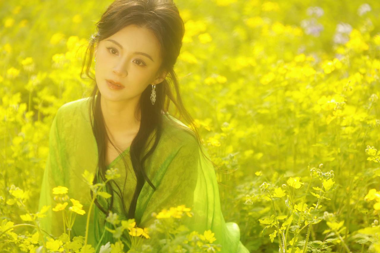 风过花田,光影漫过肩头。一身青衫,赴一场春日的温柔邀约。