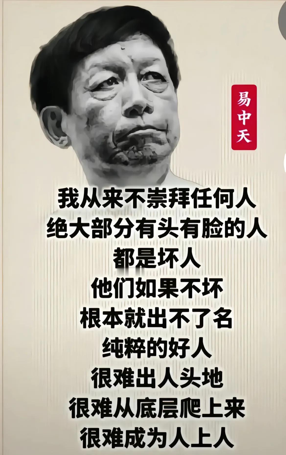 但易中天的表达,习惯性将个别缺陷放大为整体弊病。最具争议的便是他的观点:“中国的一些有头脸的人,大部分都是坏的。”结合语境不难看出,他本意只是抨击极少数贪腐蛀虫、谋取私利的不良公职人员。任何时代、任何国家,都存在少量不作为、不守底线的人,这是客观事实,值得批判反思。