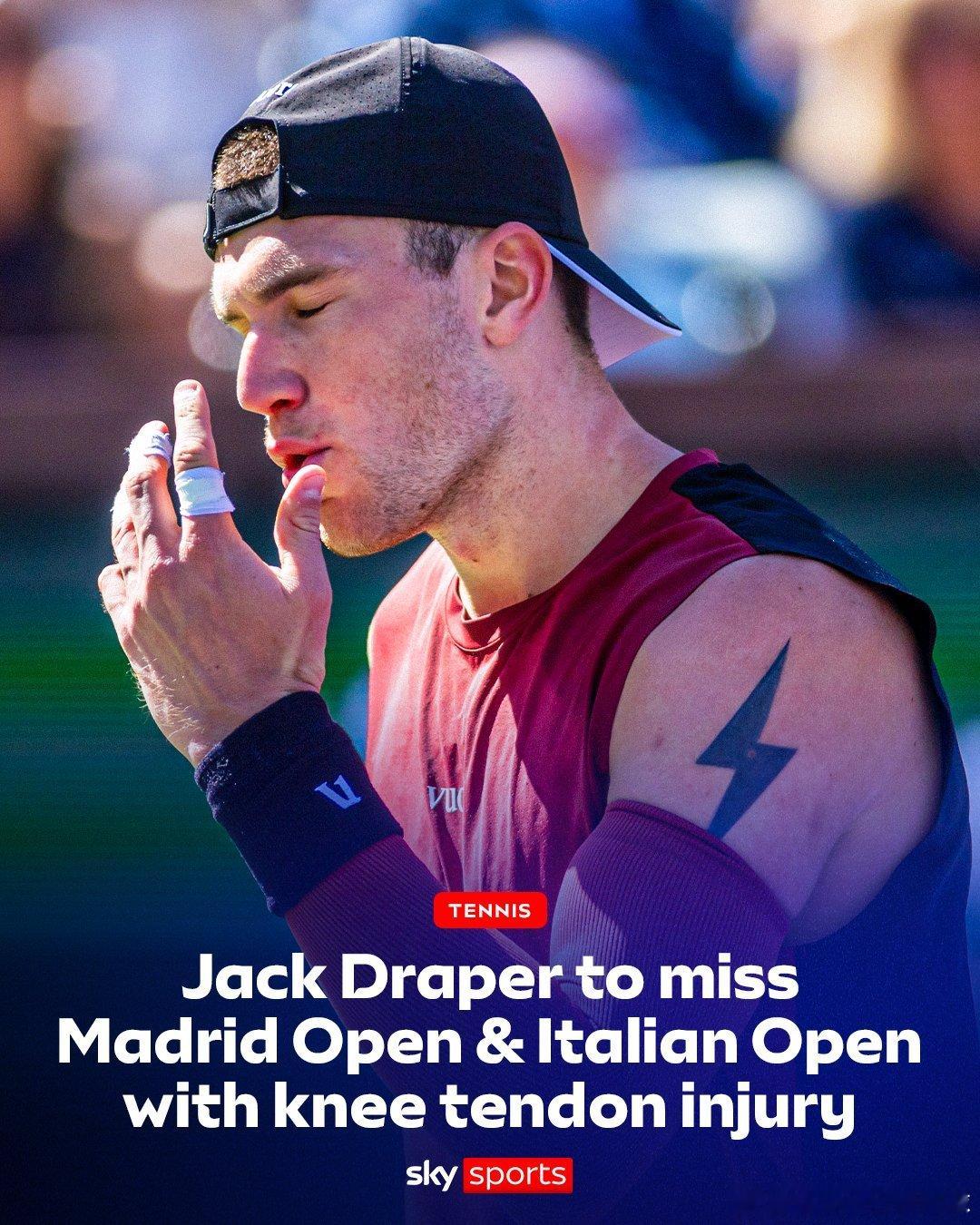 英国选手杰克·德雷珀因膝伤退出马德里站与罗马站赛事,此前他在巴塞罗那公开赛就因膝伤提前退赛。❌