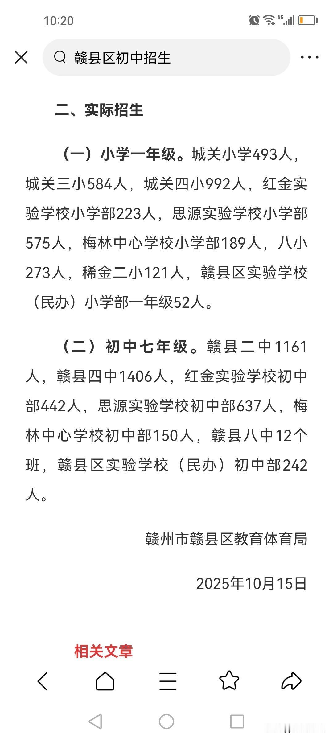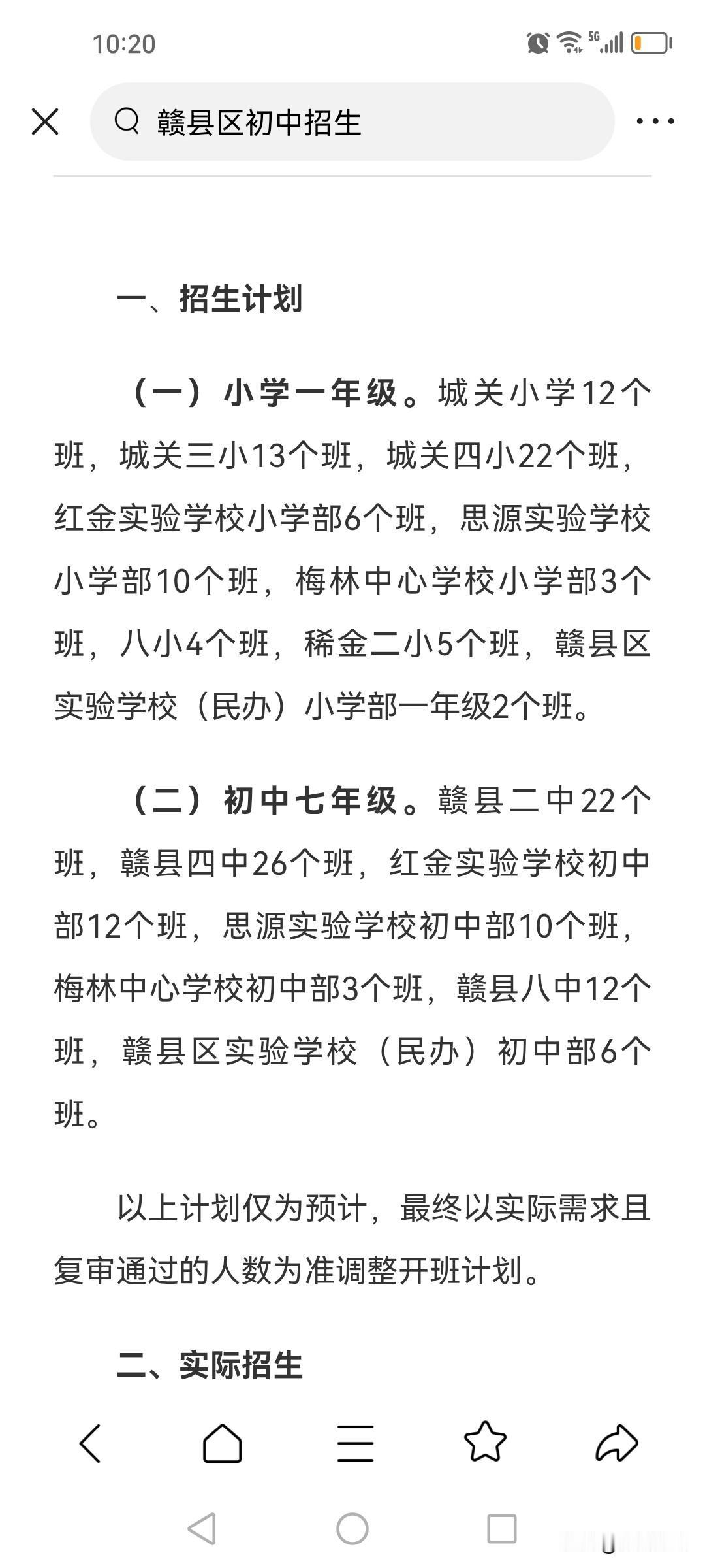 2025年赣县城区小学、初中起始年级招生结果 访问量: 145 一、招生计划