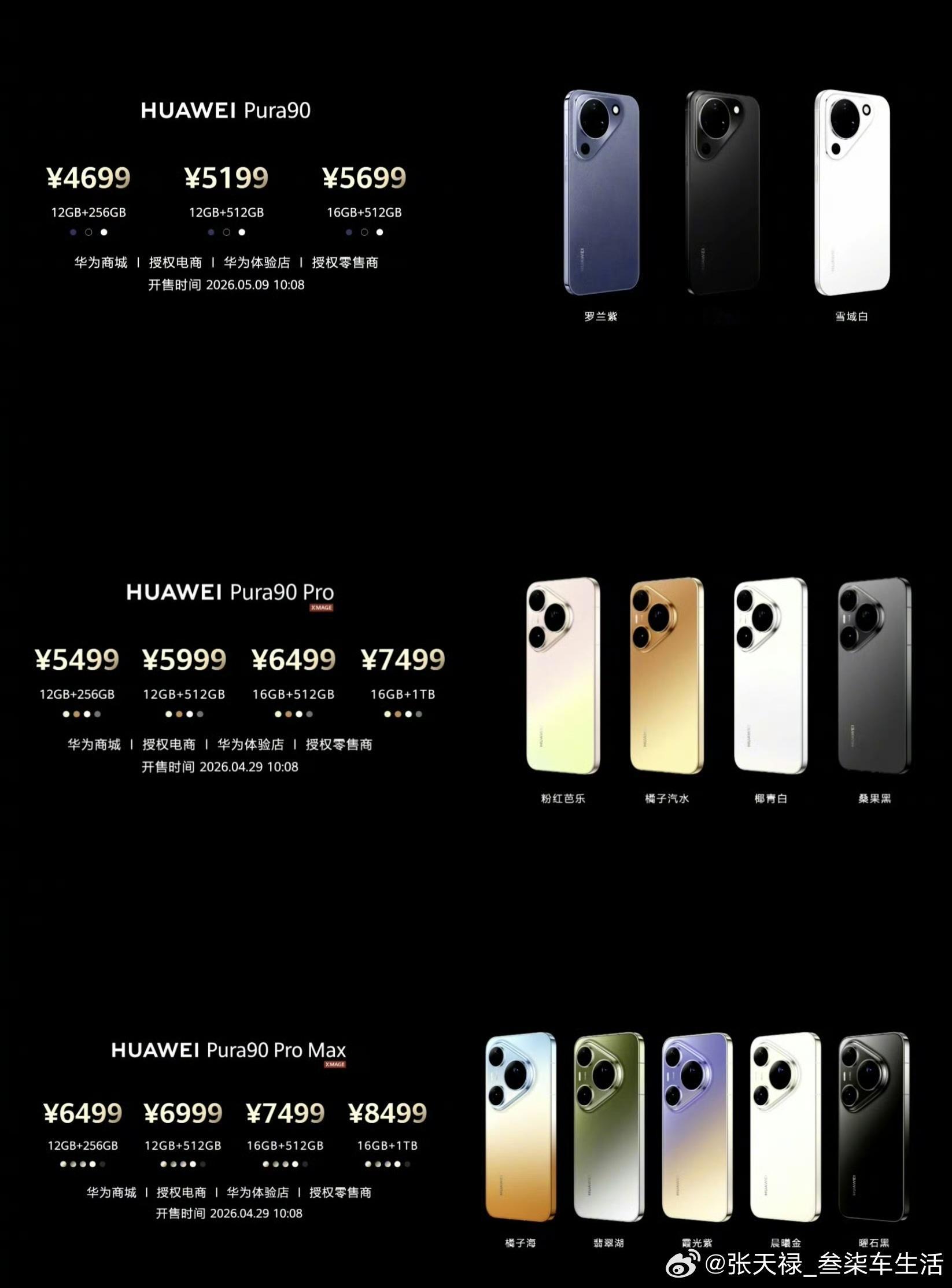 Pura90:4699元-5699元Pura90 Pro:5499元-7499元Pura90 Pro Max:6499元-8499元