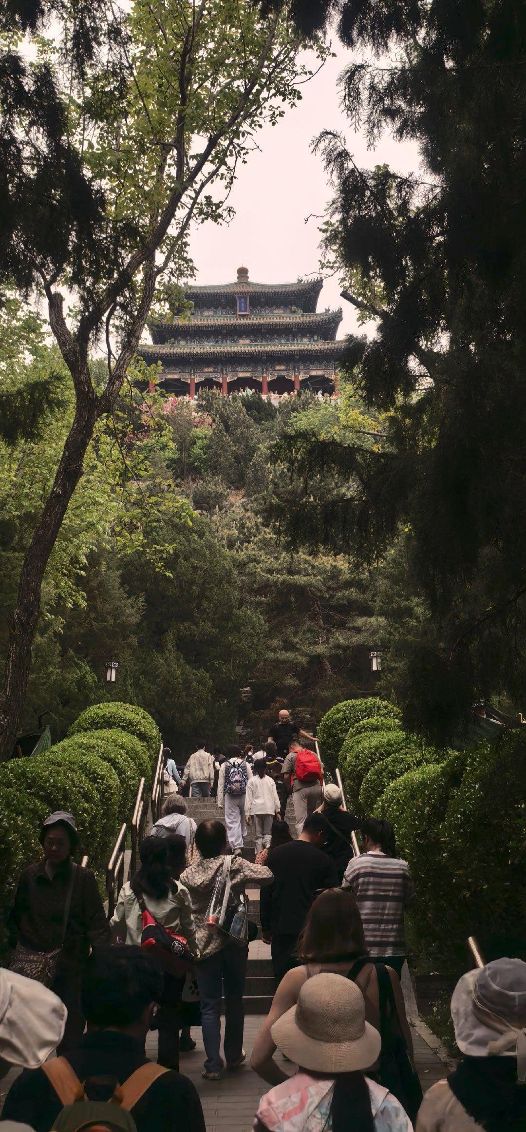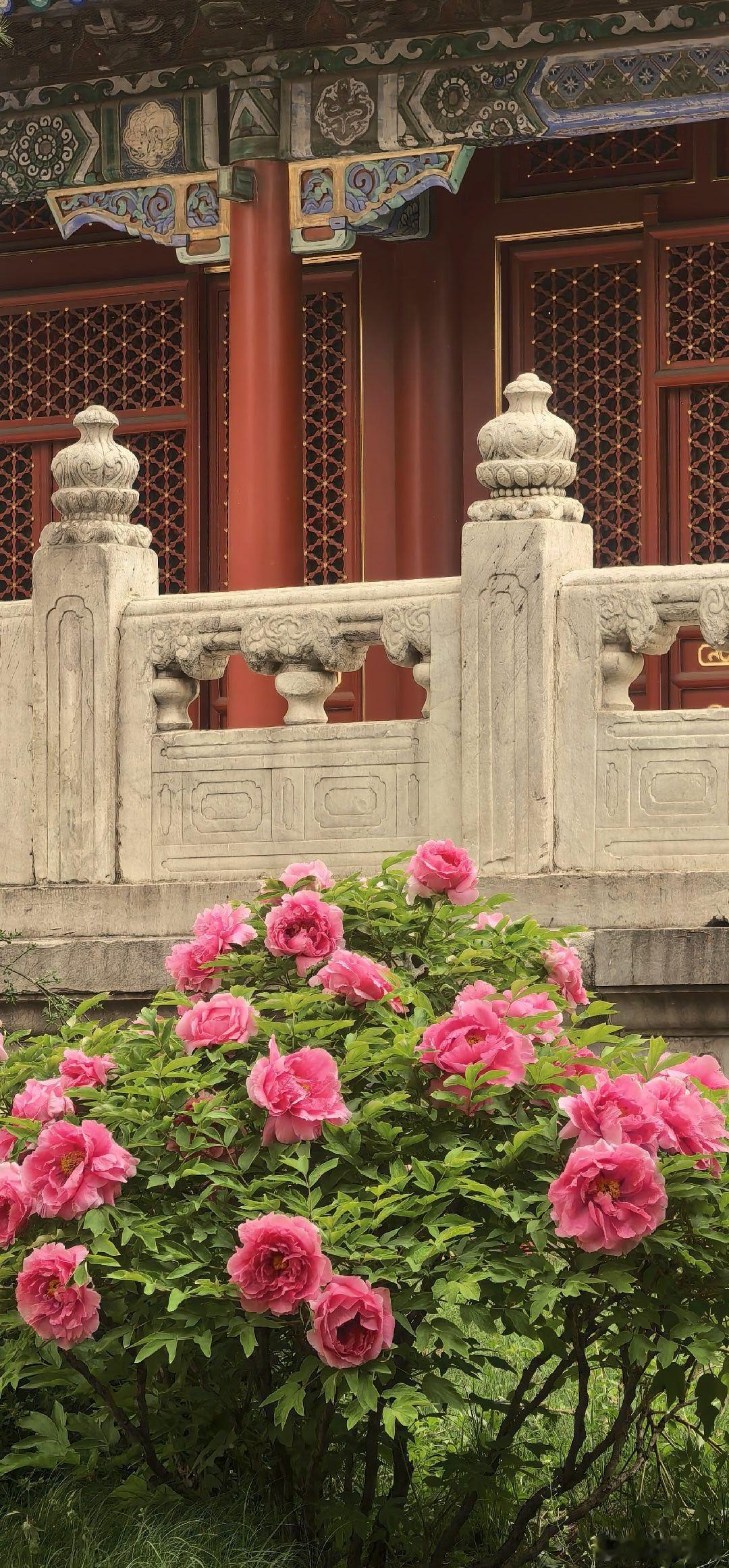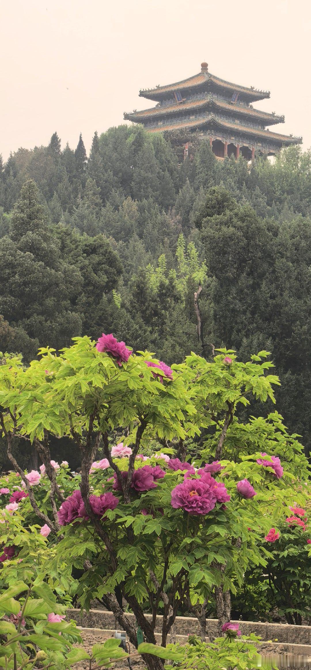【景山公园】春深临禁苑,国色满高台。叠艳凝清露,繁香绕玉阶。瑶台云气近,古殿晓烟