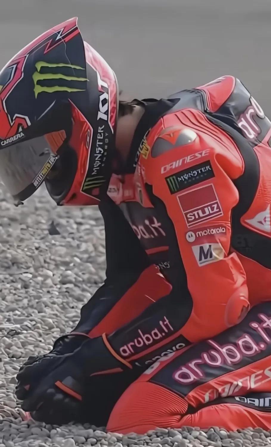 话说2025年4月在荷兰(阿森)站,由联想赞助的杜卡迪车队11号车手布莱加因为机车故障被迫退赛了。他气的捶胸顿足,跪在地上半天没有起来。这个杜卡迪11号车手布莱加一直跟前车并驾齐驱。但是前车经验老道,他突然加速了,11号杜卡迪车手毫不示弱也想加速跟进并超越,结果出了机车故障熄火停摆了。