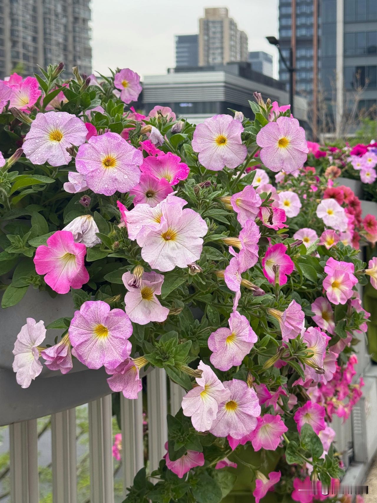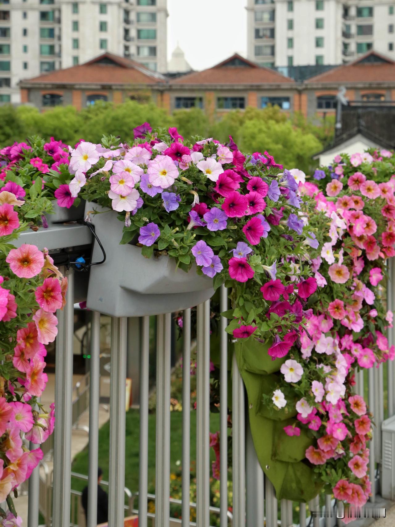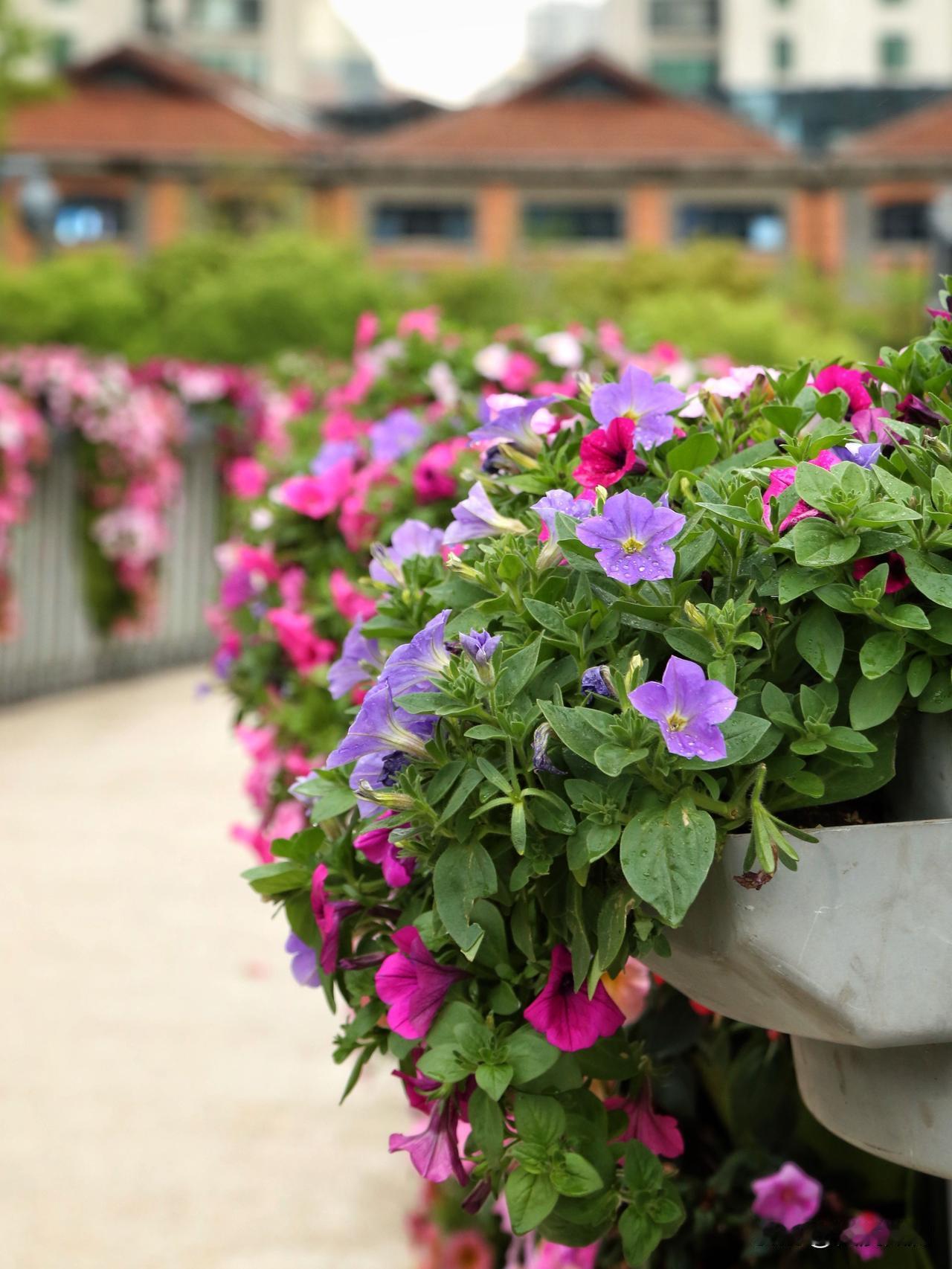 碧冬茄,俗名矮牵牛,原产地南美,是茄科的一种,与传统的牵牛花喇叭花不是一回事,与辣椒,番茄,茄子是近亲。白,粉,紫,红,五彩斑斓,色彩很纯,喜欢阳光,且不怕热,花期超长,花量巨大。图片是苏河湾万象天地的矮牵牛装扮效果,还是有点惊艳的。