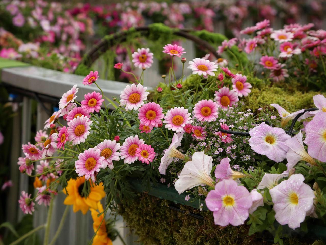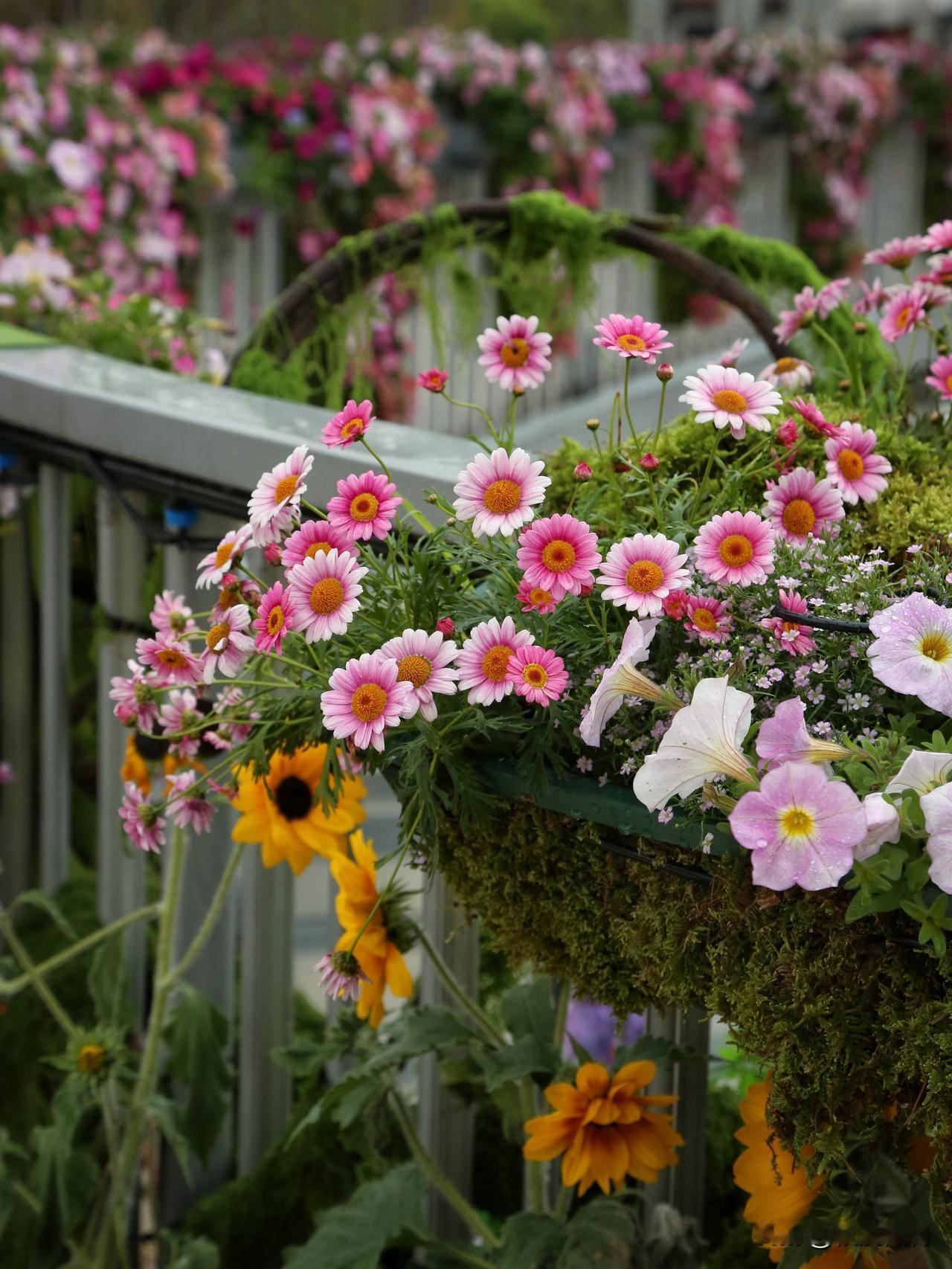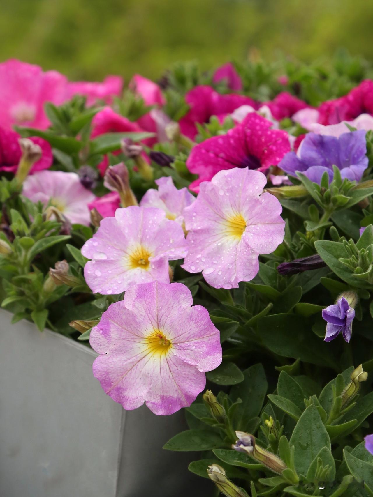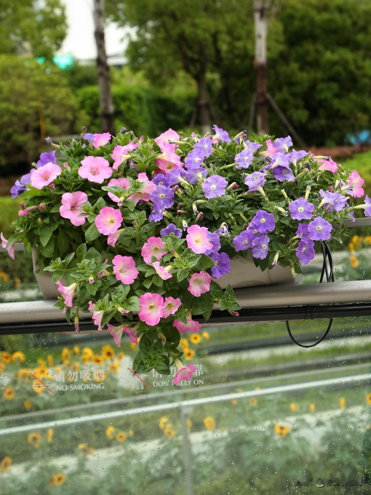 碧冬茄,俗名矮牵牛,原产地南美,是茄科的一种,与传统的牵牛花喇叭花不是一回事,与辣椒,番茄,茄子是近亲。白,粉,紫,红,五彩斑斓,色彩很纯,喜欢阳光,且不怕热,花期超长,花量巨大。图片是苏河湾万象天地的矮牵牛装扮效果,还是有点惊艳的。