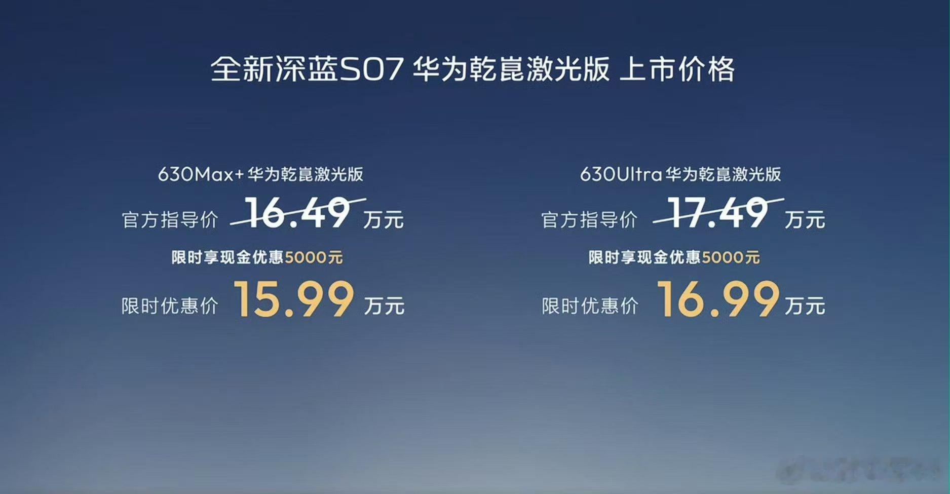 深蓝S07华为亁崑激光版上市,限时优惠价15.99万起