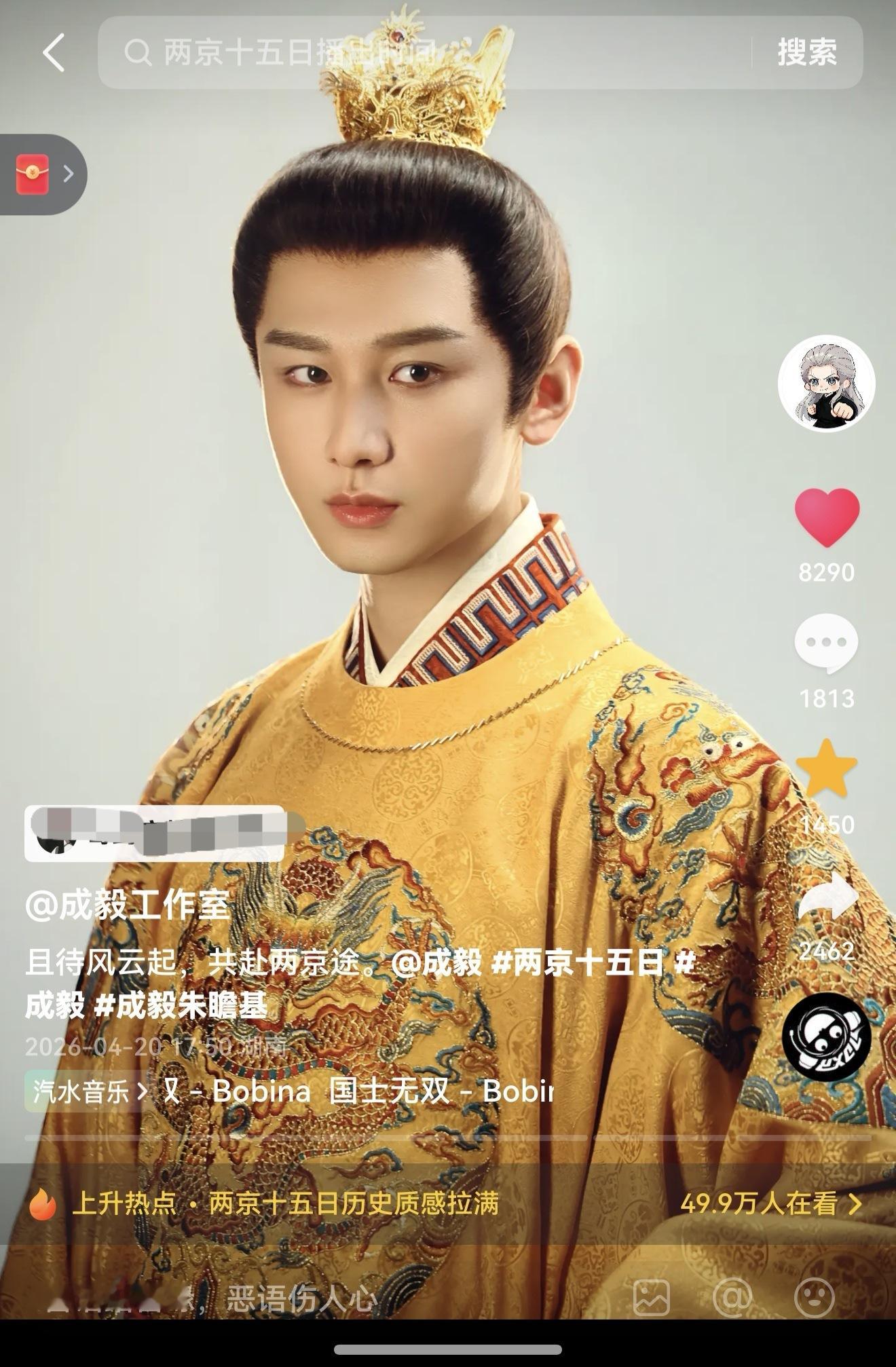 ie们,成毅工作室抖音发了两京十五日新物料,是成毅太子朱瞻基的新物料速去抖加热一