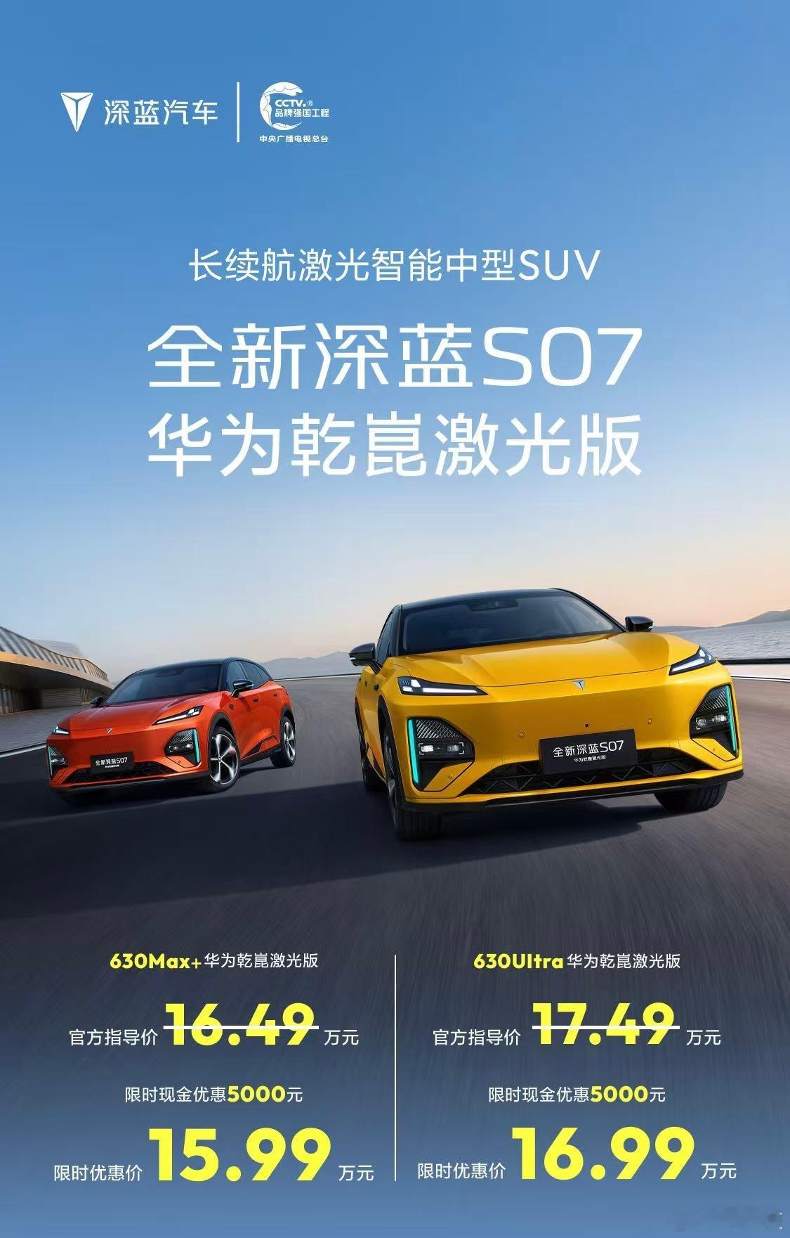 同级长续航华为乾崑激光新标杆,全新深蓝S07正式上市,15.99万限时优惠起售深