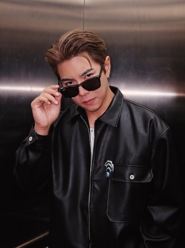 羅天宇破格染金髮戴上黑超及穿上皮褸。