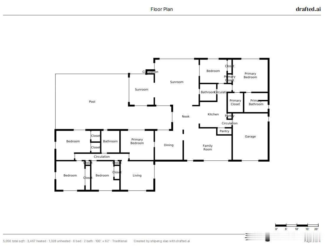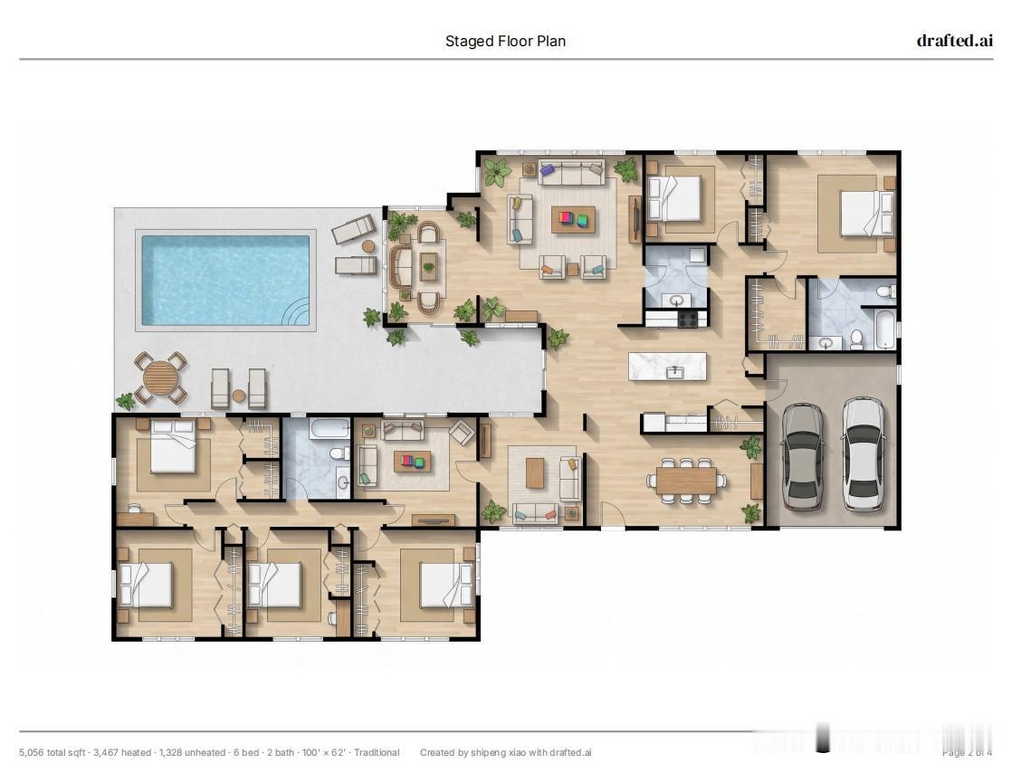 以后人人都设计师了,这是我不到5分钟出具的方案,还带三维模型。这个软件任意的勾勒或者拖拽出你家房子的轮廓线,然后你在配置好你想有几个卧室几个卫生间要不要泳池这些户外,Ai就可以生成带有布局和功能分区的平面彩色图。