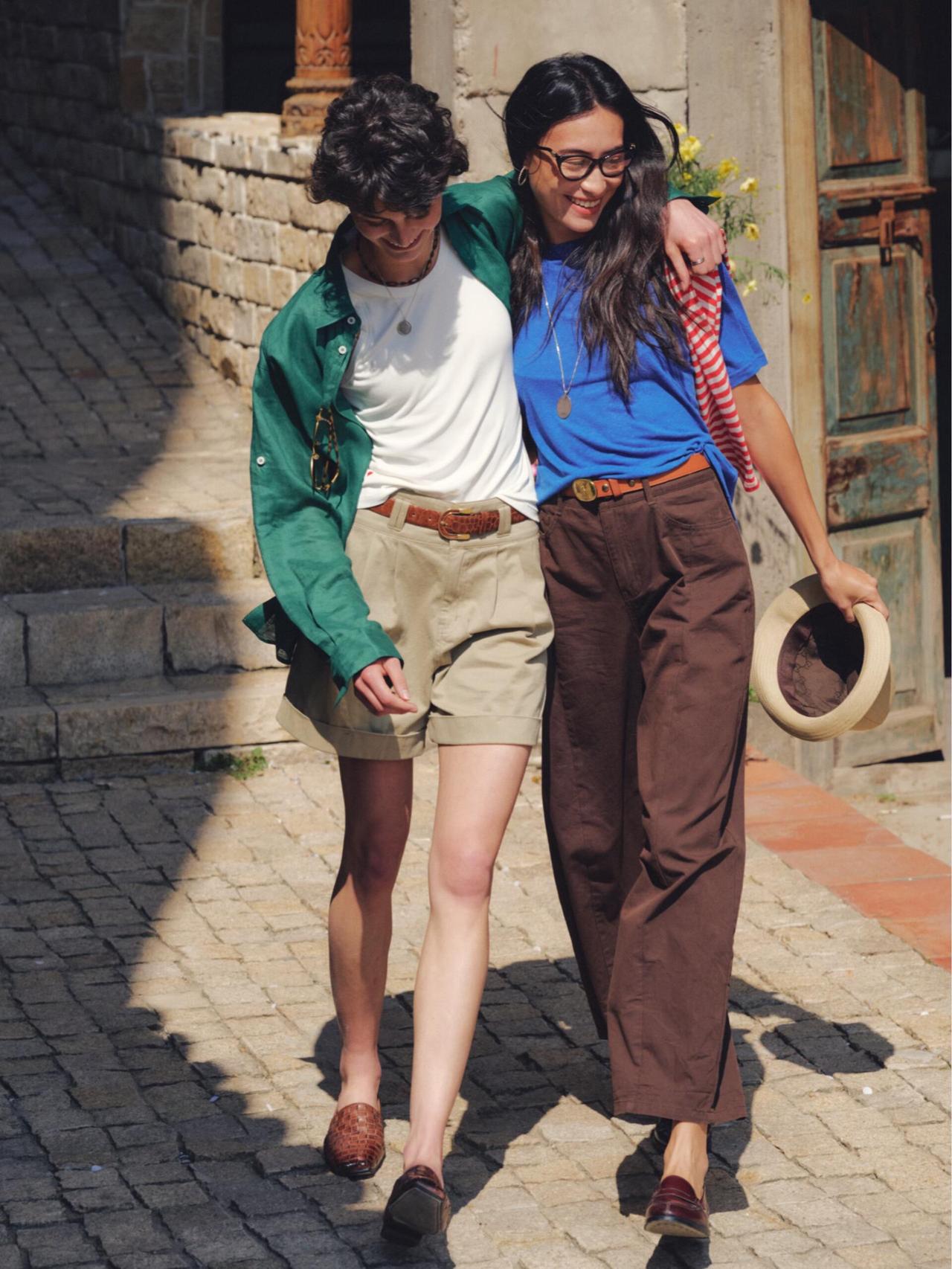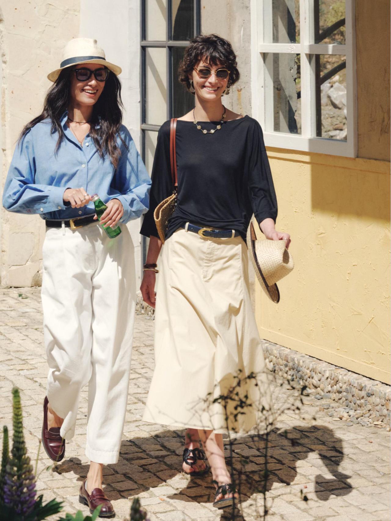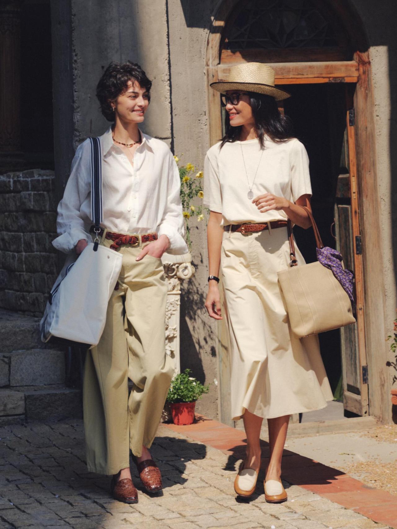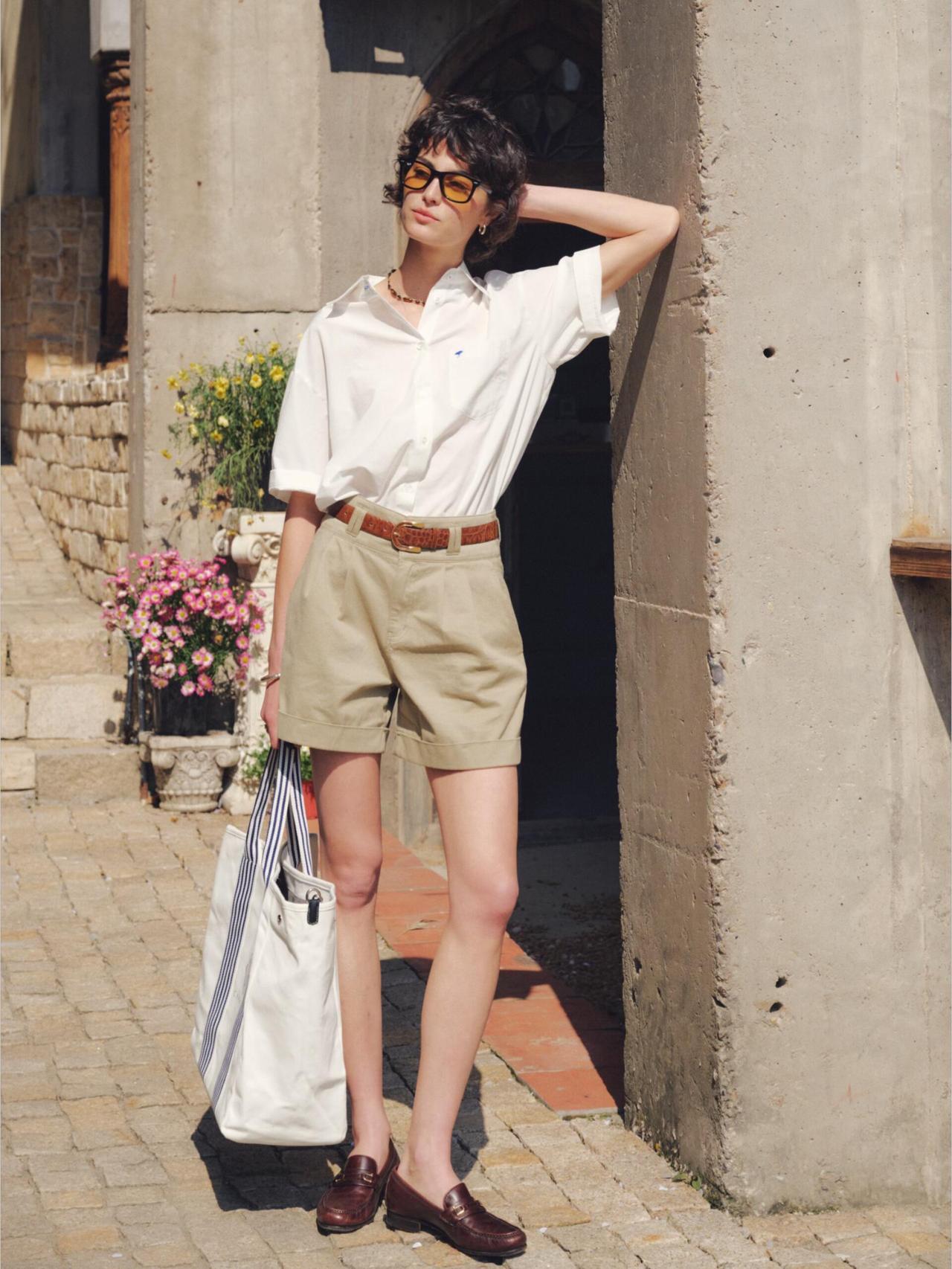 松弛又浪漫,这样的穿搭超美! 浅蓝衬衫配卡其半裙,白无袖搭棕短裤,或是亮色块撞出活力,亚麻、帆布与皮革交织出法式质感。草帽、托特包与乐福鞋是点睛之笔,不费力的优雅在街角蔓延,打造慵懒又明媚的夏日氛围。