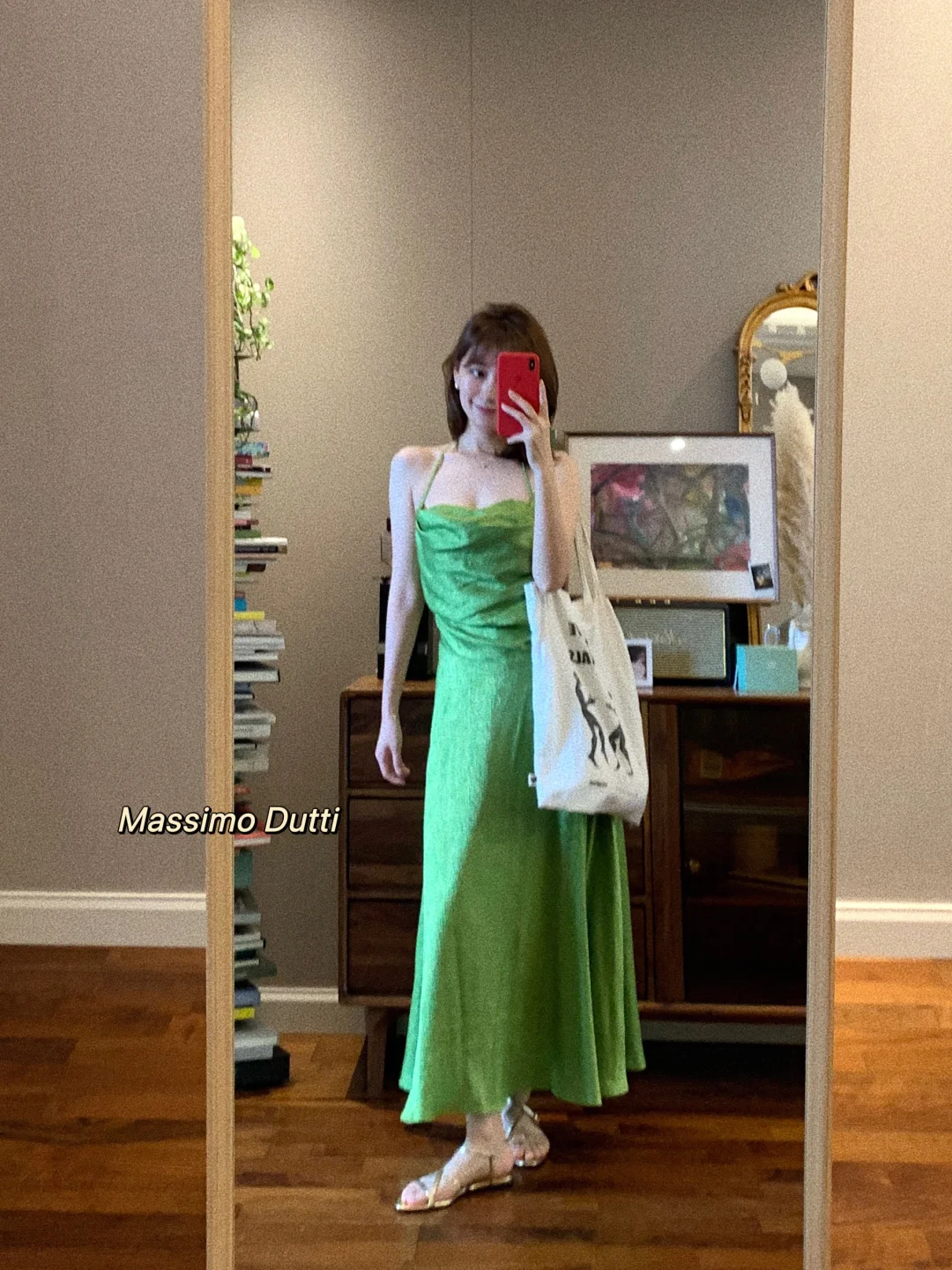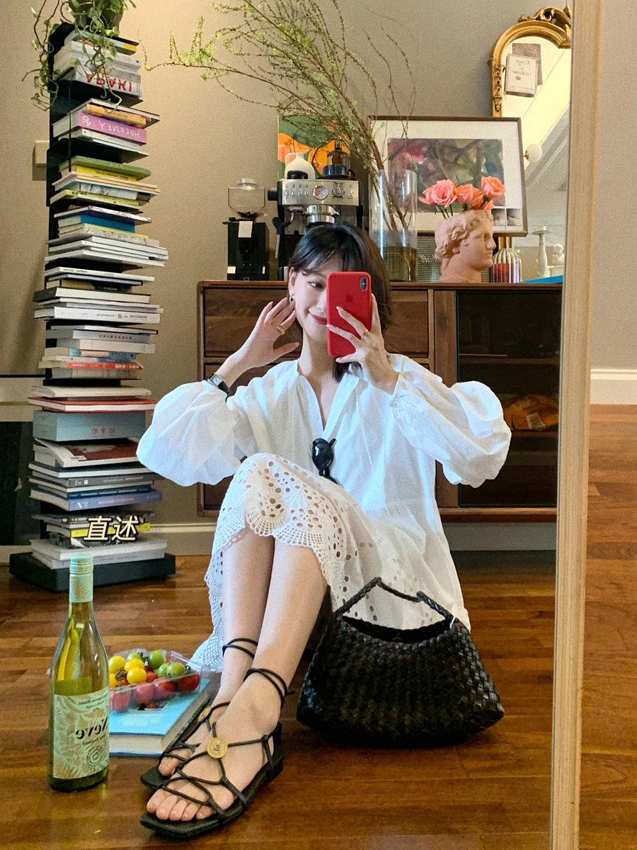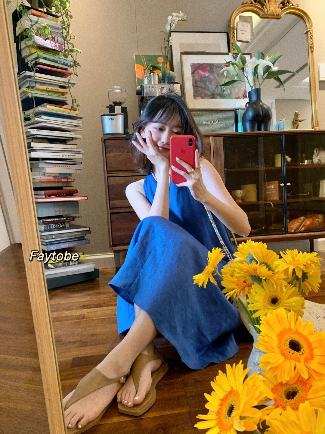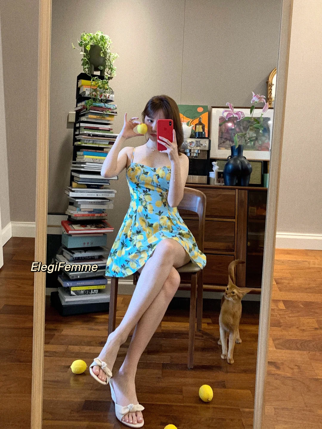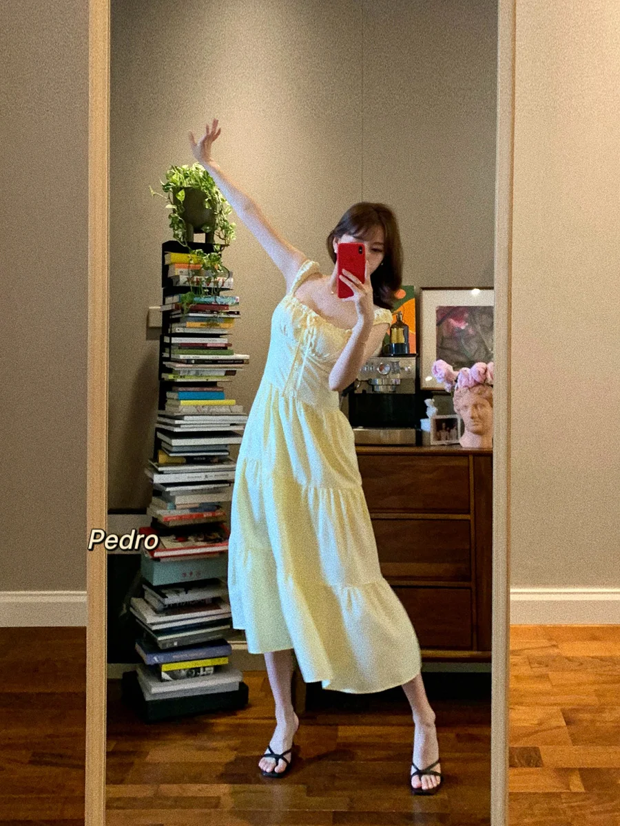 夏日清新穿搭,浅粉色连衣裙搭配高跟鞋,轻松自在。