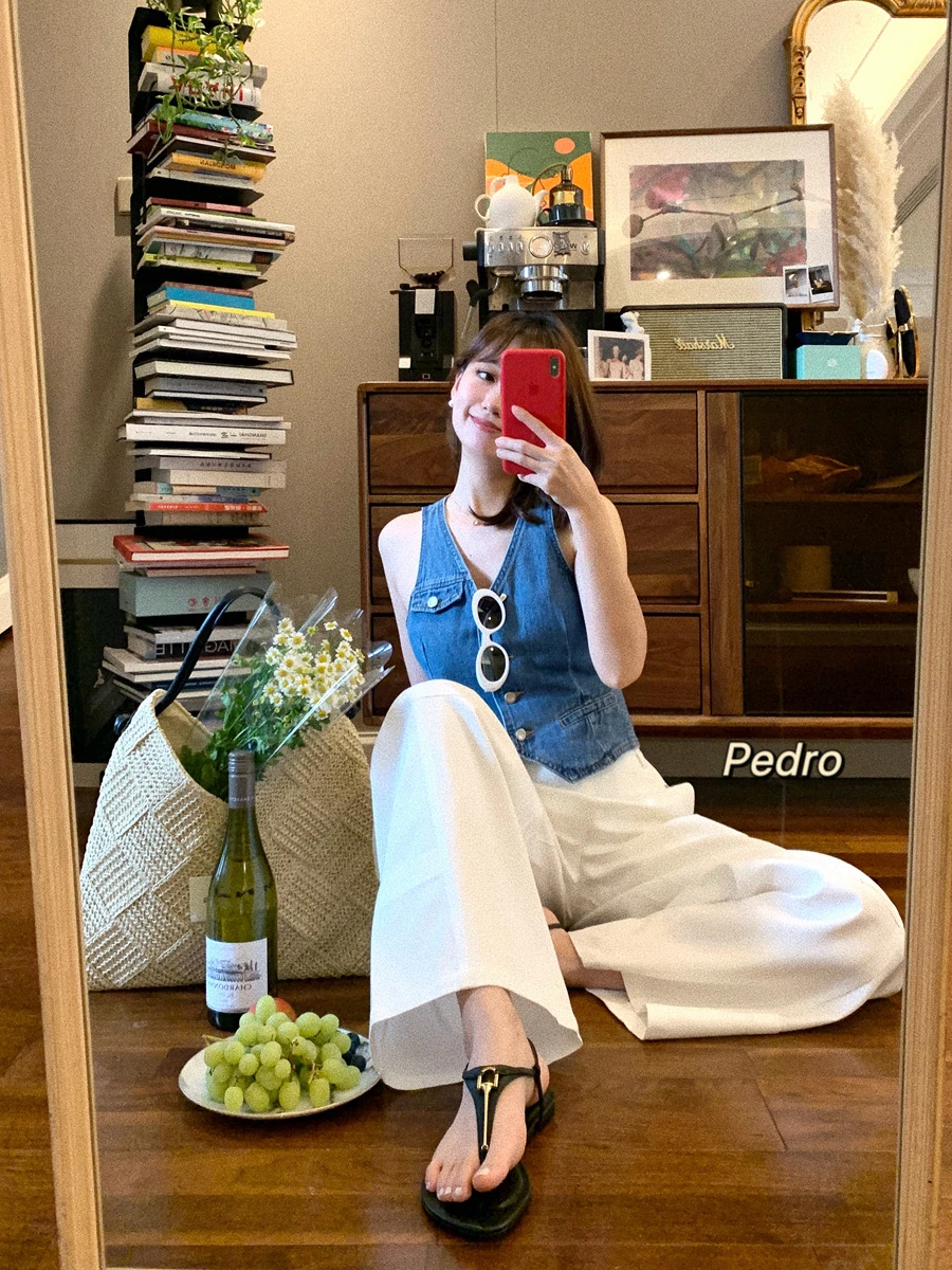 都市雅致风,白色衬衫+米色西裤,搭配高跟鞋,尽显时尚魅力!