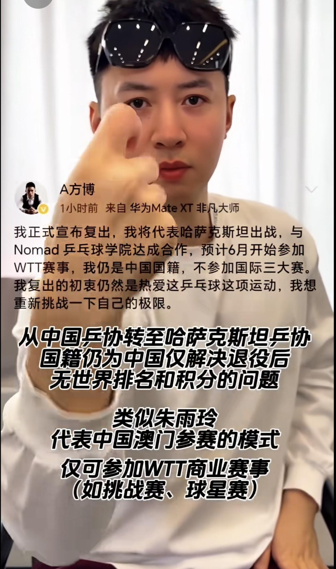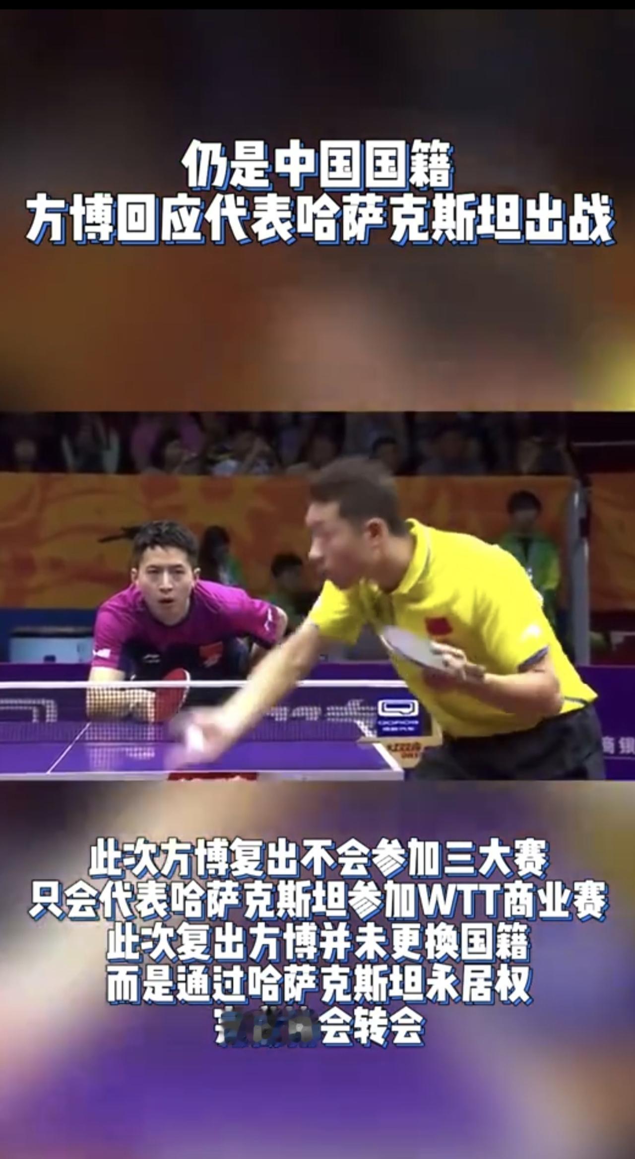 仍是中国国籍,方博回应代表哈萨克斯坦出战(编辑:金润豆)方博 WTT 国乒