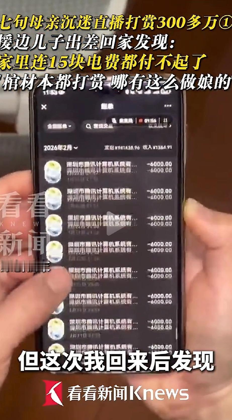 平台呢?330万从老人的账户流出去,没有任何预警、没有任何限额提醒。钱进了平台的腰包,主播分了红,老人却连15块钱的电费都交不出。