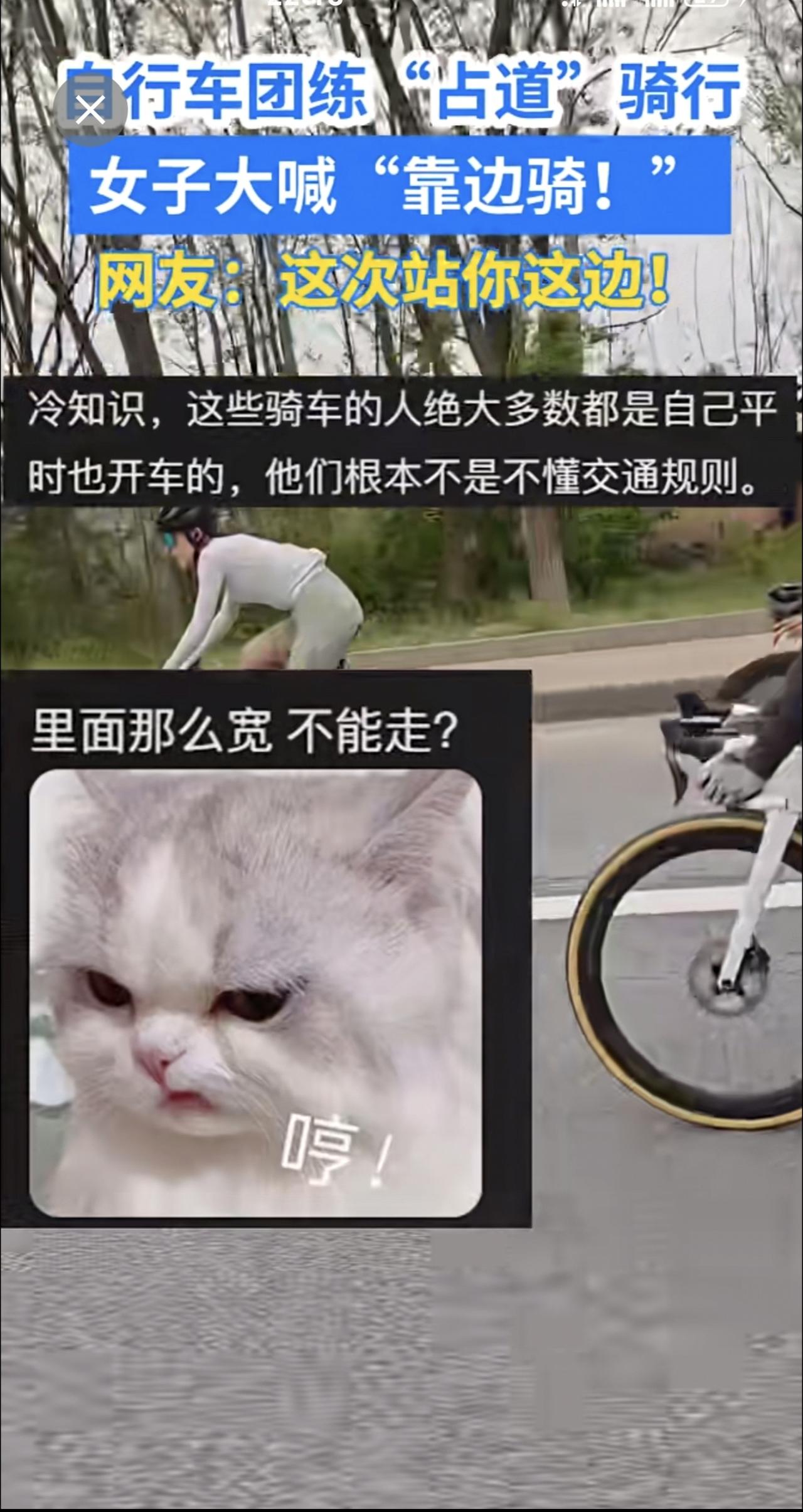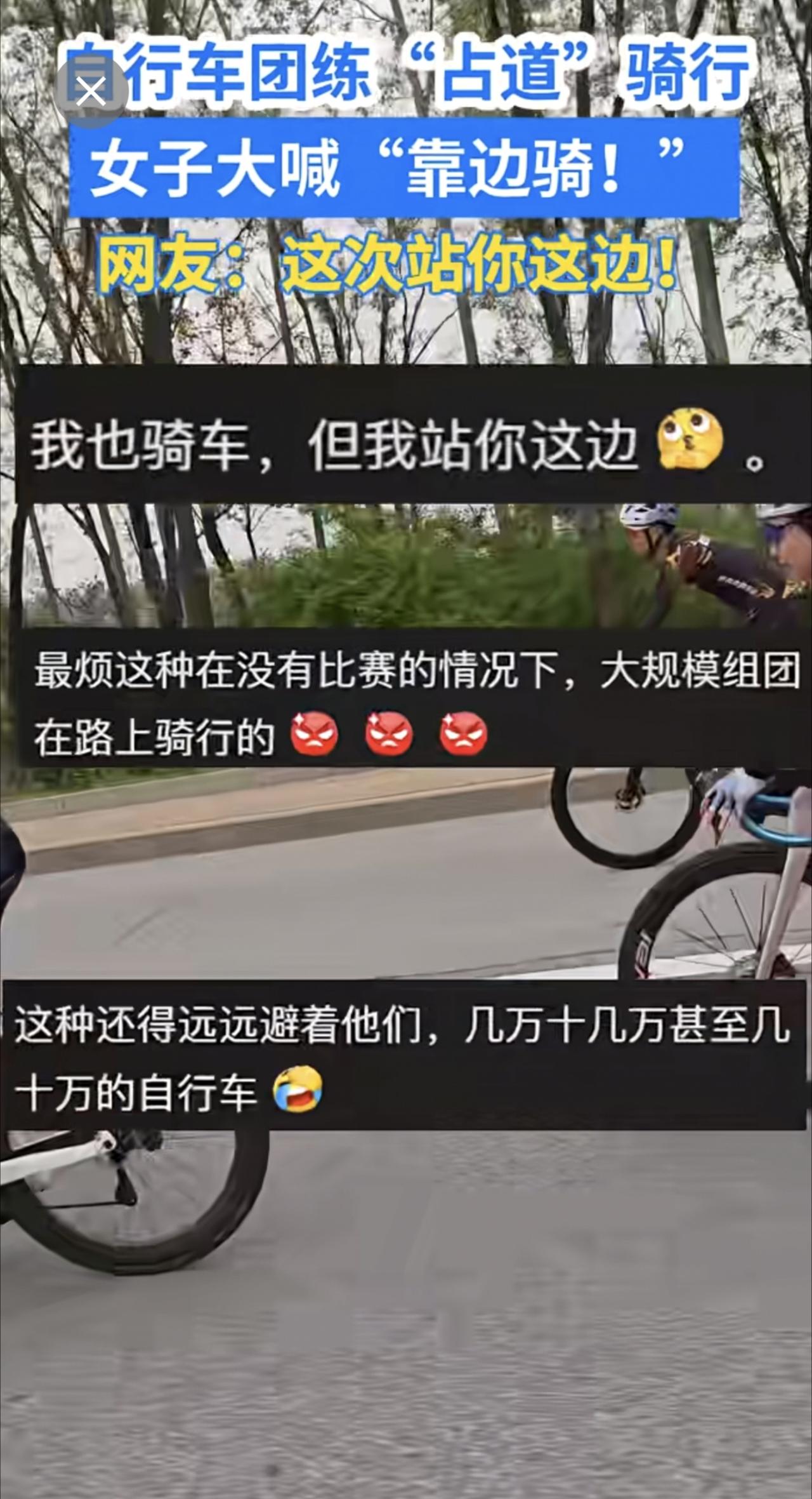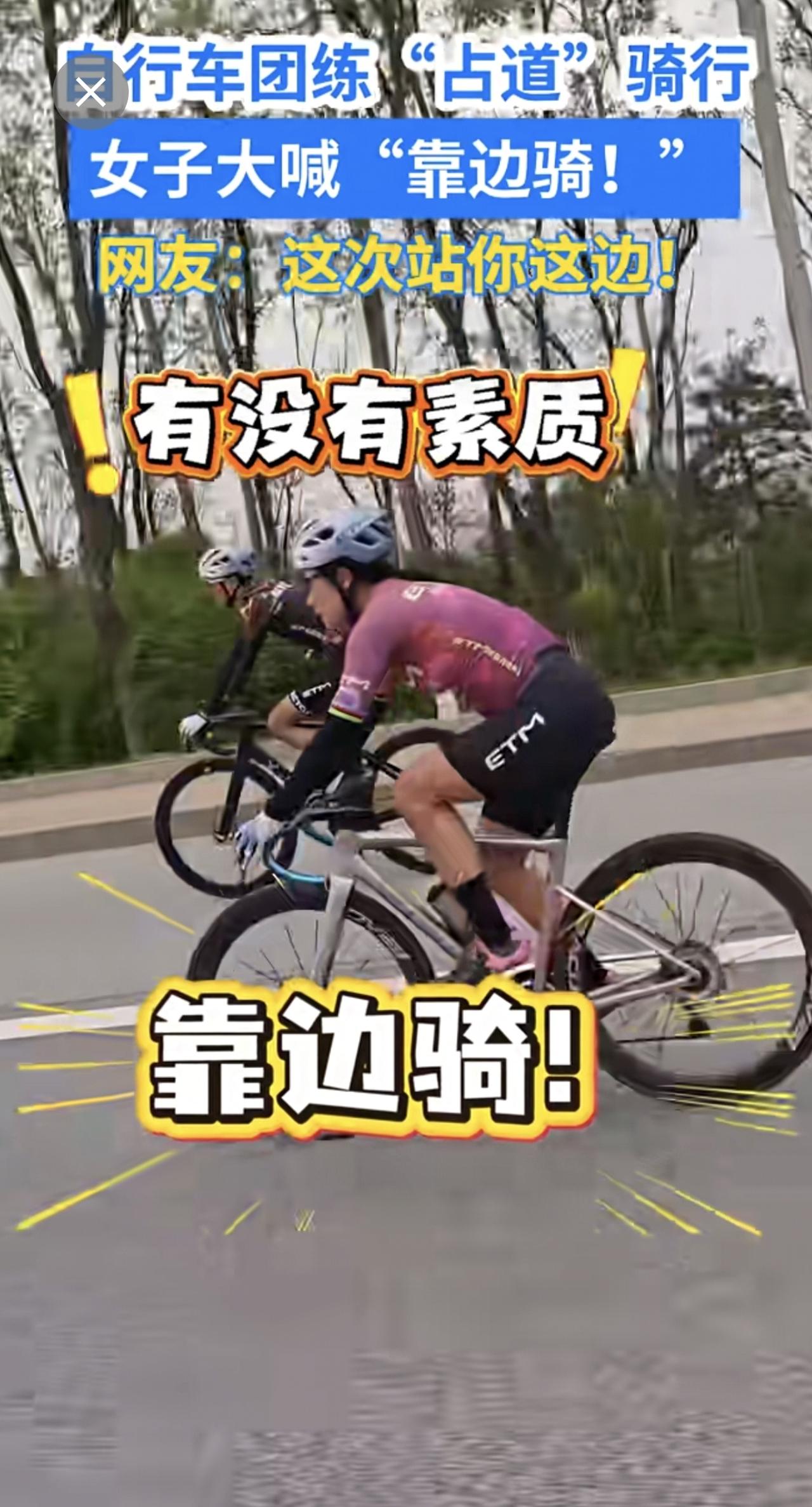 自行车团练“占道”骑行,女子大喊“靠边骑!”网友:这次站你这边! 骑行 交通安全
