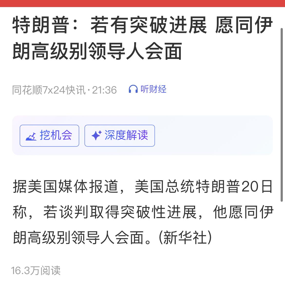 不靠谱:若谈判取得突破性进展,他愿同伊高级别领导人会面。