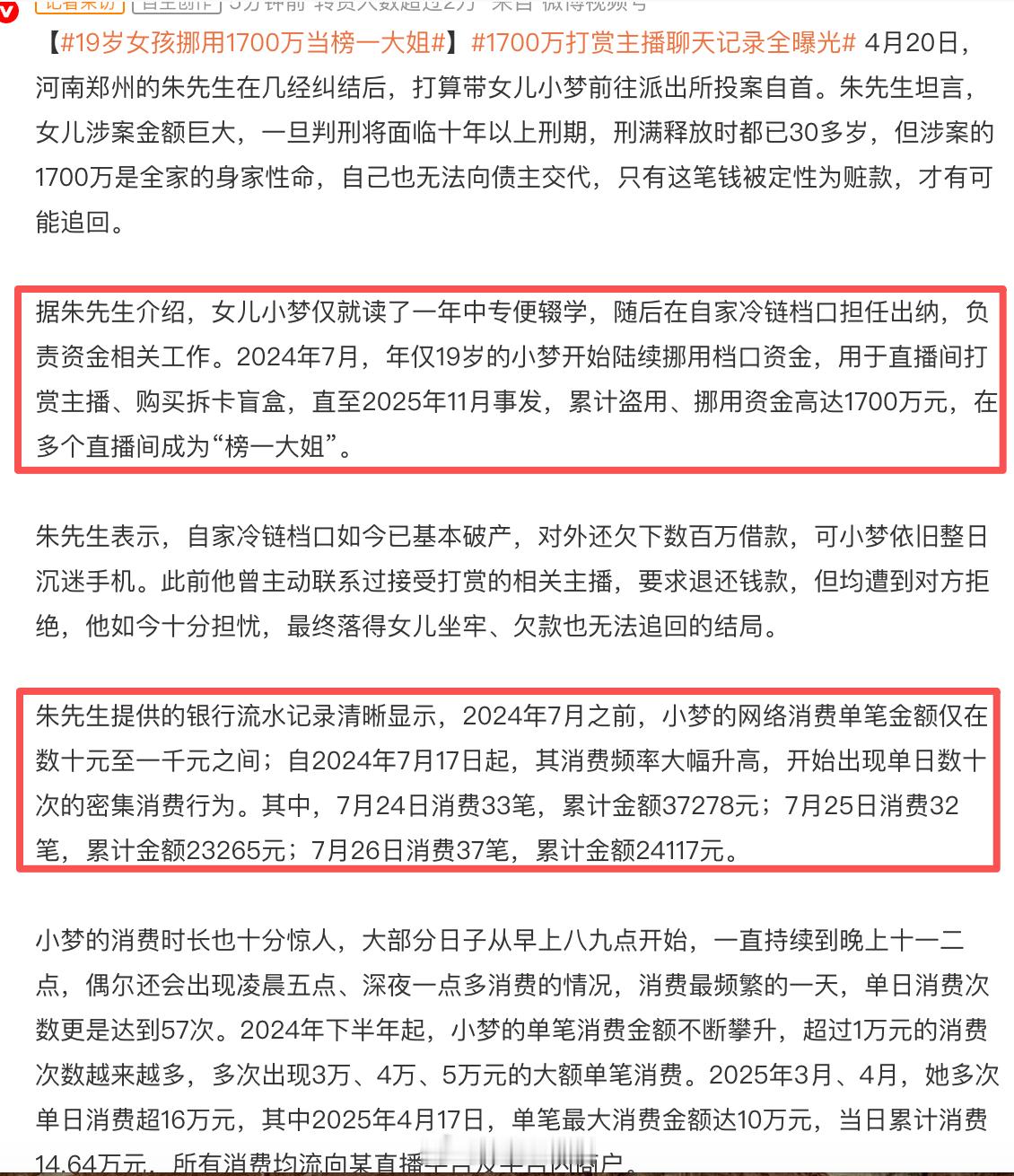 1700万打赏主播聊天记录全曝光19岁女孩挪用1700万当榜一大姐