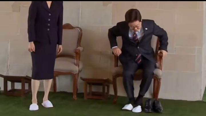 韩国一对夫妇前往印度在一处活动现场前,特意换上了一次性白鞋有点像酒店的那种鞋子,虽然是一次例行的小事,可从他们摆放鞋子的礼仪上来看,颇有大家风范的优良传统,又有对自己言行举止的慎重考虑,在换鞋的时候李明明需要坐在椅子上才能完成,而金女士站着就完成了此动作,他们换不换鞋或者怎么样都不重要,最重要的是那双女鞋的质量真的太好了,尤其是上面的那两朵花,可以说金女士真的很爱干净,那双鞋子的内部一点泛黄的迹象都没有,而且款式简约大气,让人联想到以前宫女那美丽的三寸金莲,看到女士的鞋子心里有种莫名的亢奋,尤其是高跟鞋身材比较凹凸的女性穿上,那个气质瞬间拉升到极致,而一双擦的蹭亮的男士皮鞋感觉不到它有什么魅力,同样是鞋子为什么会有这么大的区别,是人赋予了鞋子魅力还是设计者给了它生命,一切还是懵懂为佳。