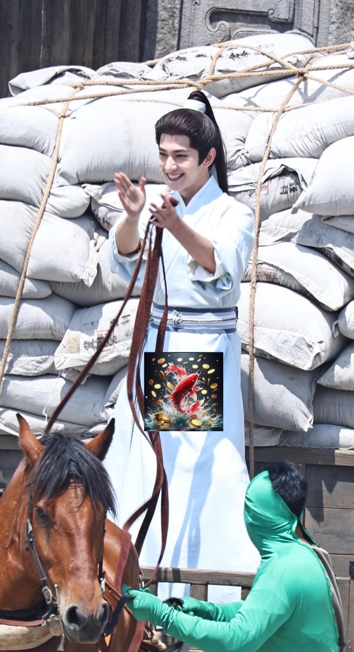 杨洋《不让江山》新路透,在拍戏现场开心的鼓掌