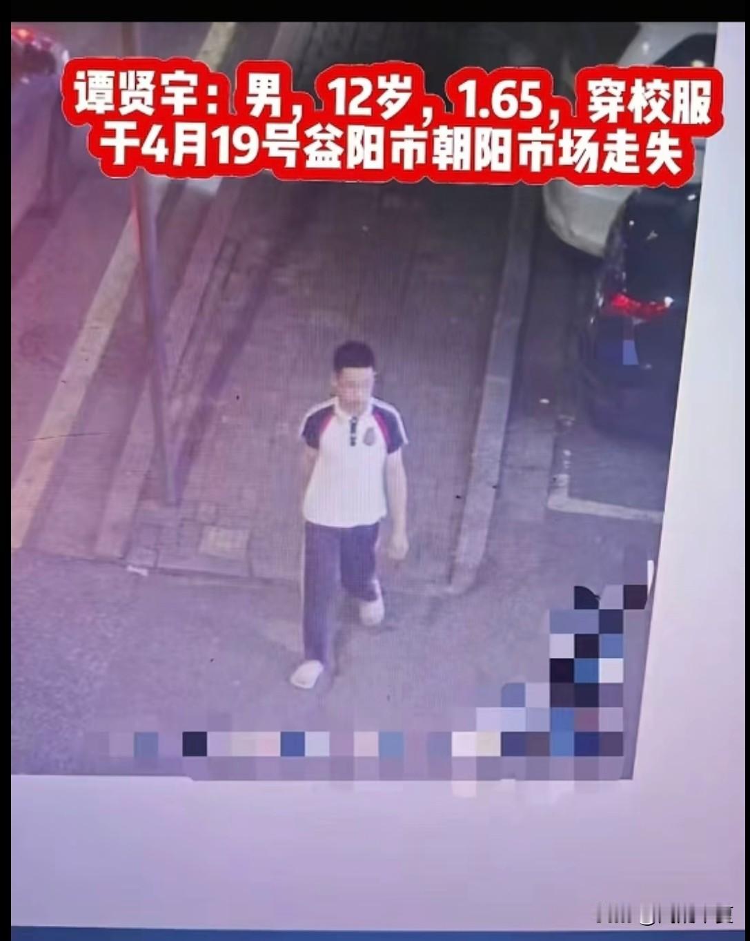 谭贤宇,男,12岁,湖南益阳。于昨晚8点半左右,从益阳金科集美东方出去,9点多出现在朝阳市场。