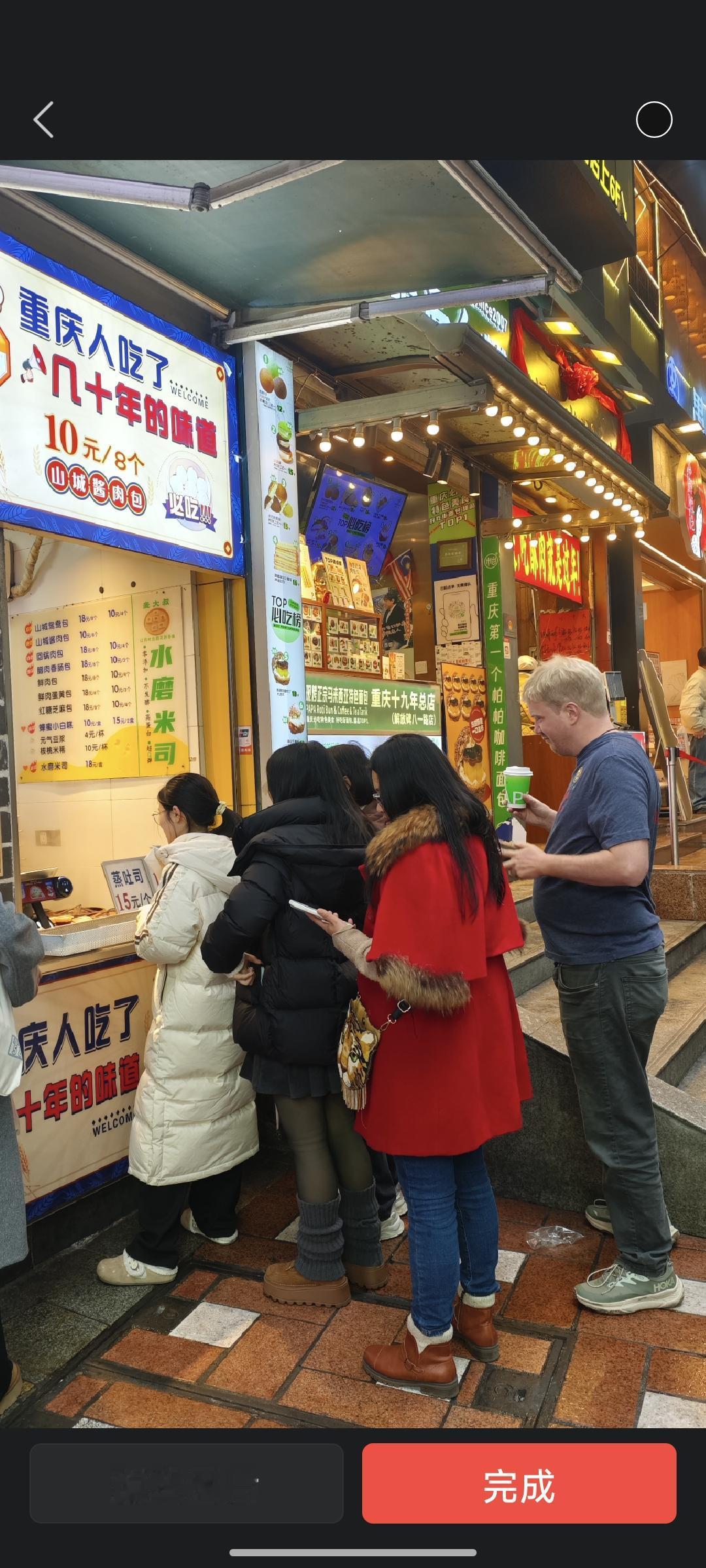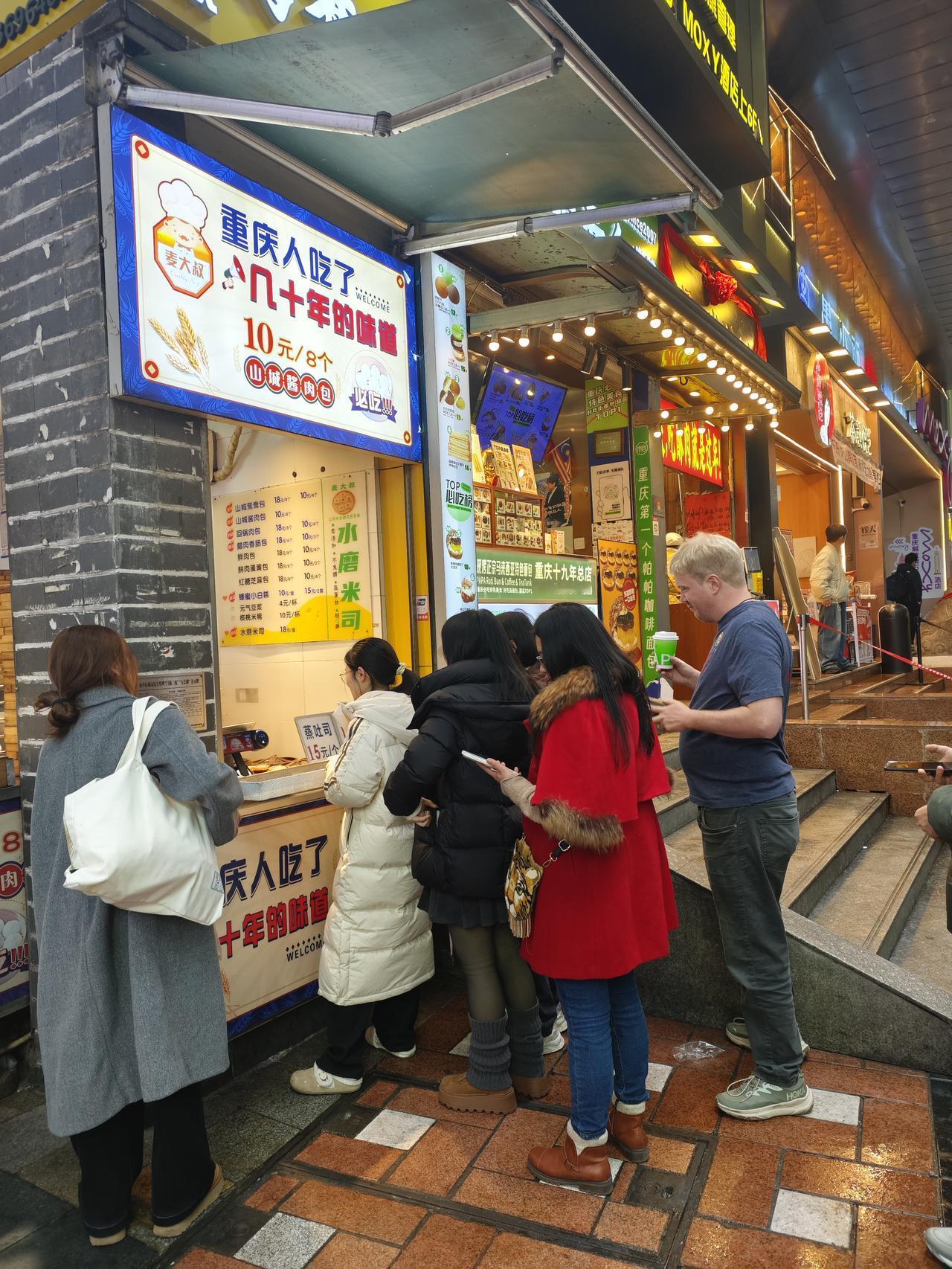 元月十二日,重庆的最低温度是西南地区最高的,重庆比昆明还要高。在重庆解放碑好吃街的外国人甚至只穿了一件短袖体裇。