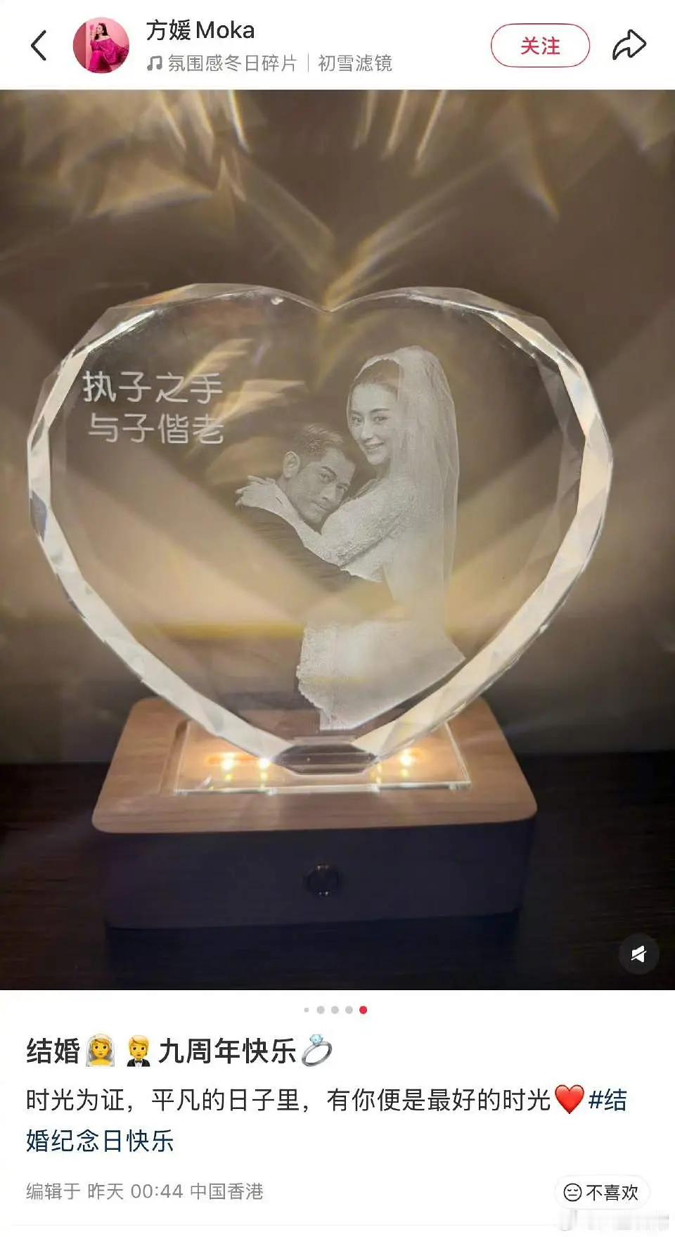 郭富城方媛九周年纪念日礼物好奇葩!郭富城和方媛迎来了结婚九周年纪念日,夫妻俩好