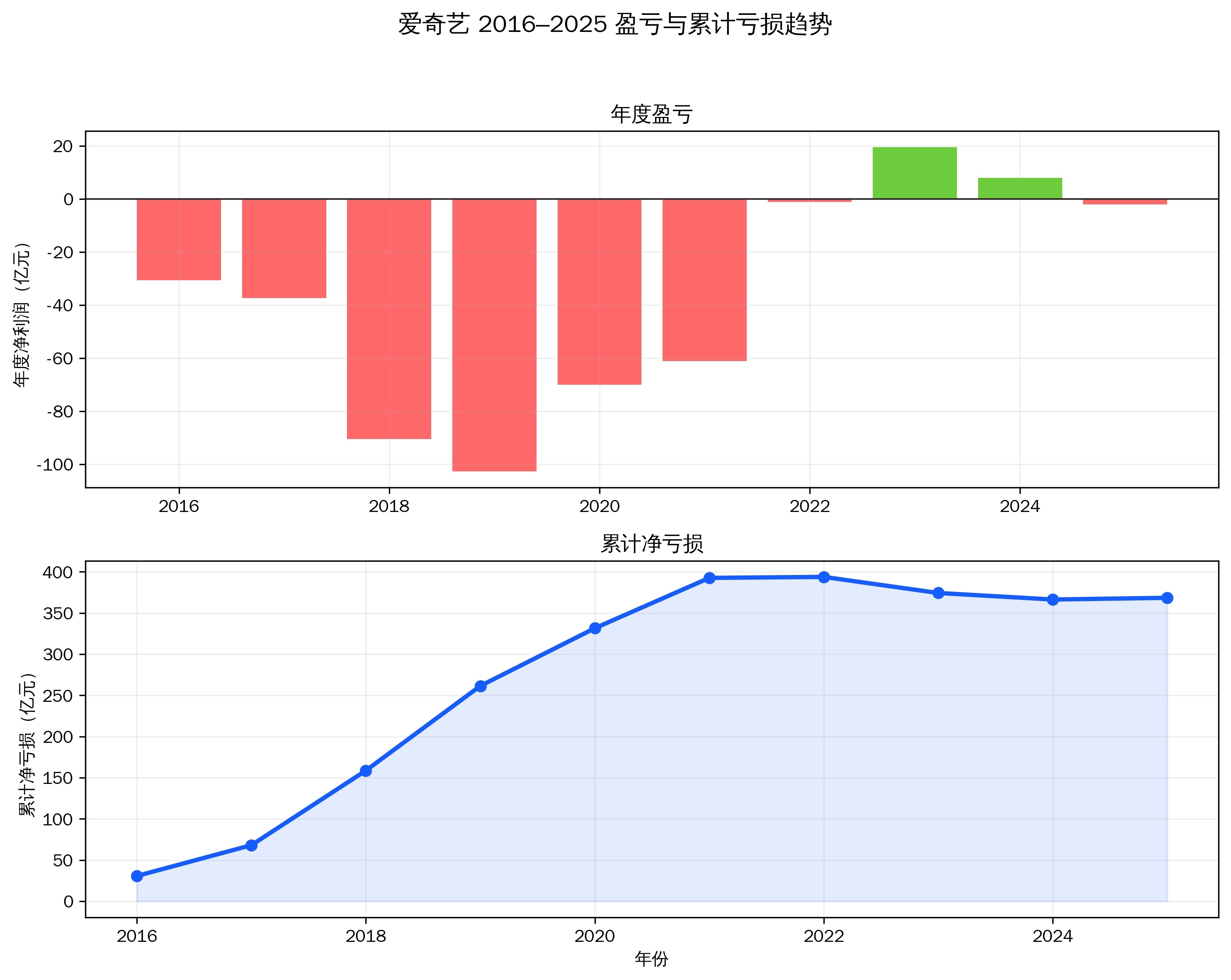 从不断收割用户会员费,可以看出爱奇艺迫切希望扭亏为盈,从2010年成立起持续亏损超10年,2023年靠着“会员费”首次全年盈利19.53亿元,2024年盈利开始下滑至7.91亿元,2025年再次陷入亏损2.06亿元。