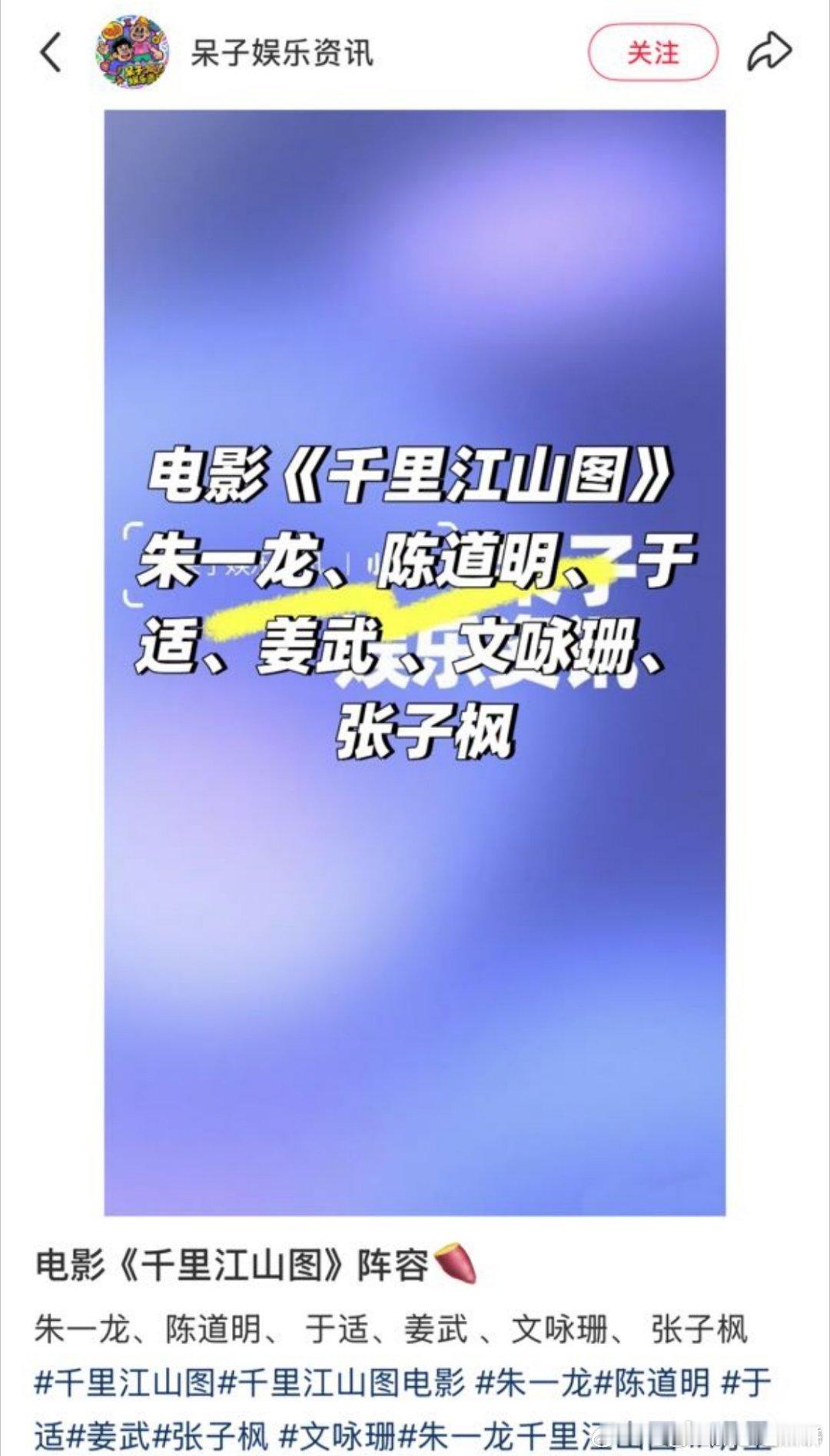 🍉电影《千里江山图》主演阵容:朱一龙,陈道明,于适,姜武,文咏珊,张子枫