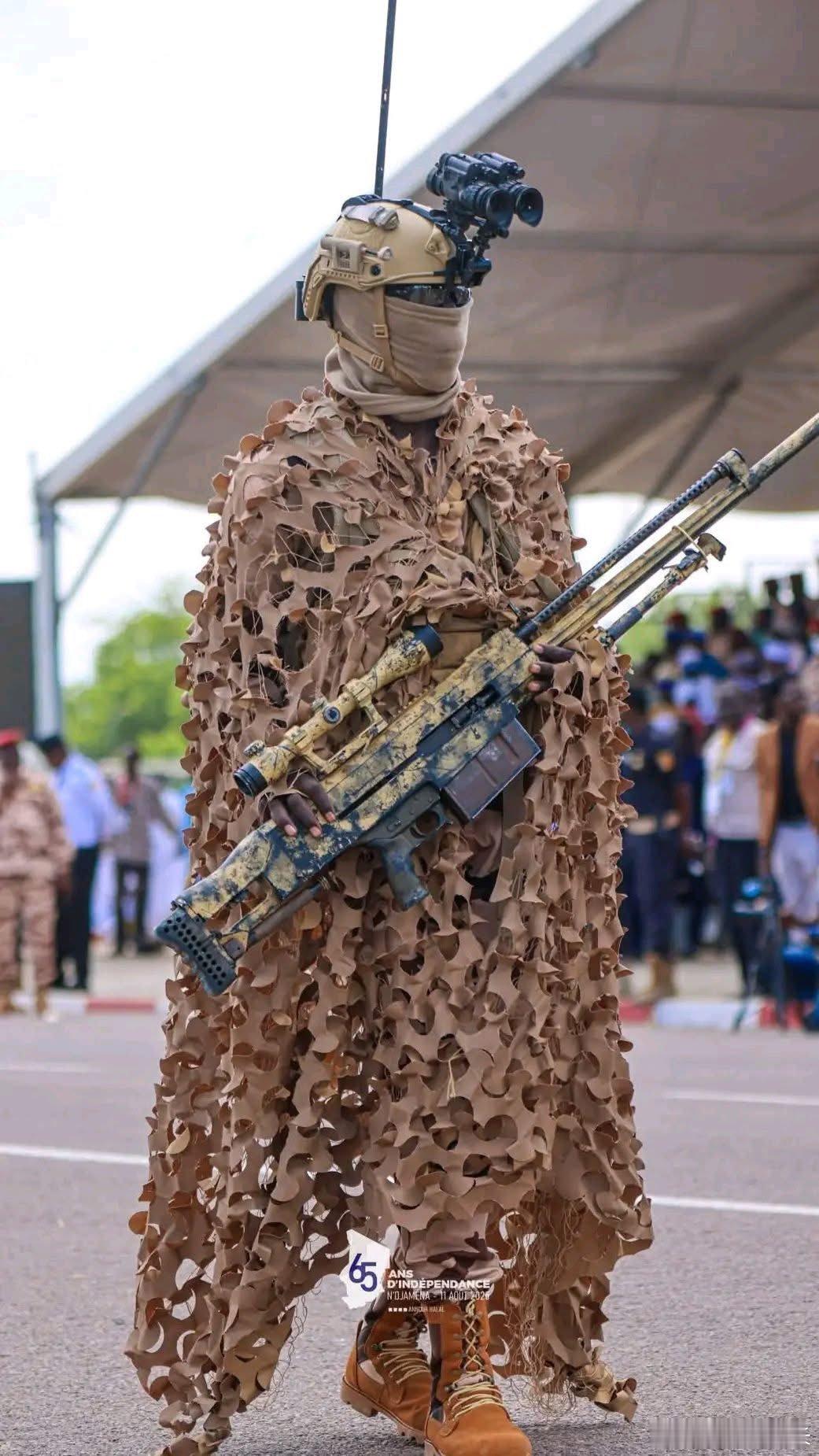 乍得国民军的狙击手,端着一把中国造的紫江M99反器材步枪。这枪口径十二点七毫米,半自动,专门用来打轻型装甲、工事或者远距离高价值目标。在非洲和中东挺常见的,因为性价比高,皮实耐造,维护也不挑。乍得军队用中国装备不少,这把大狙算是他们手里能拿得出手的远程火力了。