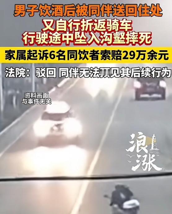 云南,一男子聚餐喝了酒,同伴将他送到家,岂料,男子又偷偷打车返回,取自己摩托车骑回家,未曾想,半路不慎跌进深沟死亡!事后,男子家属将一起喝酒的6人告上法庭,要求赔偿29万,而法院判决令人意外!