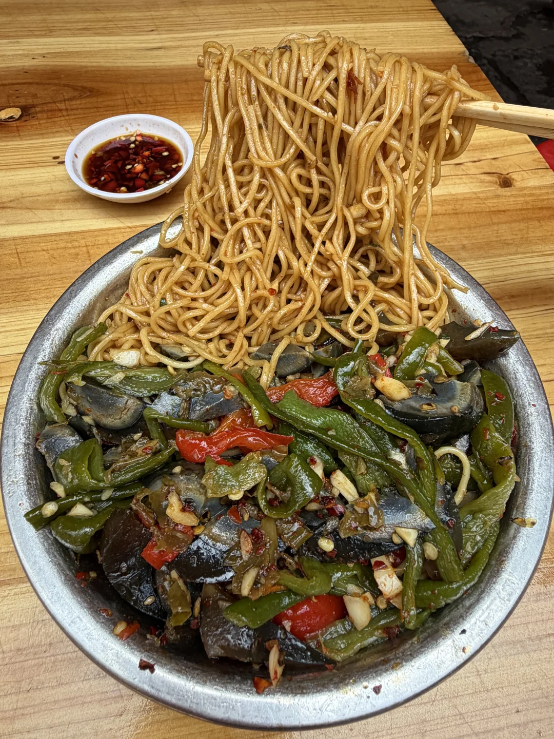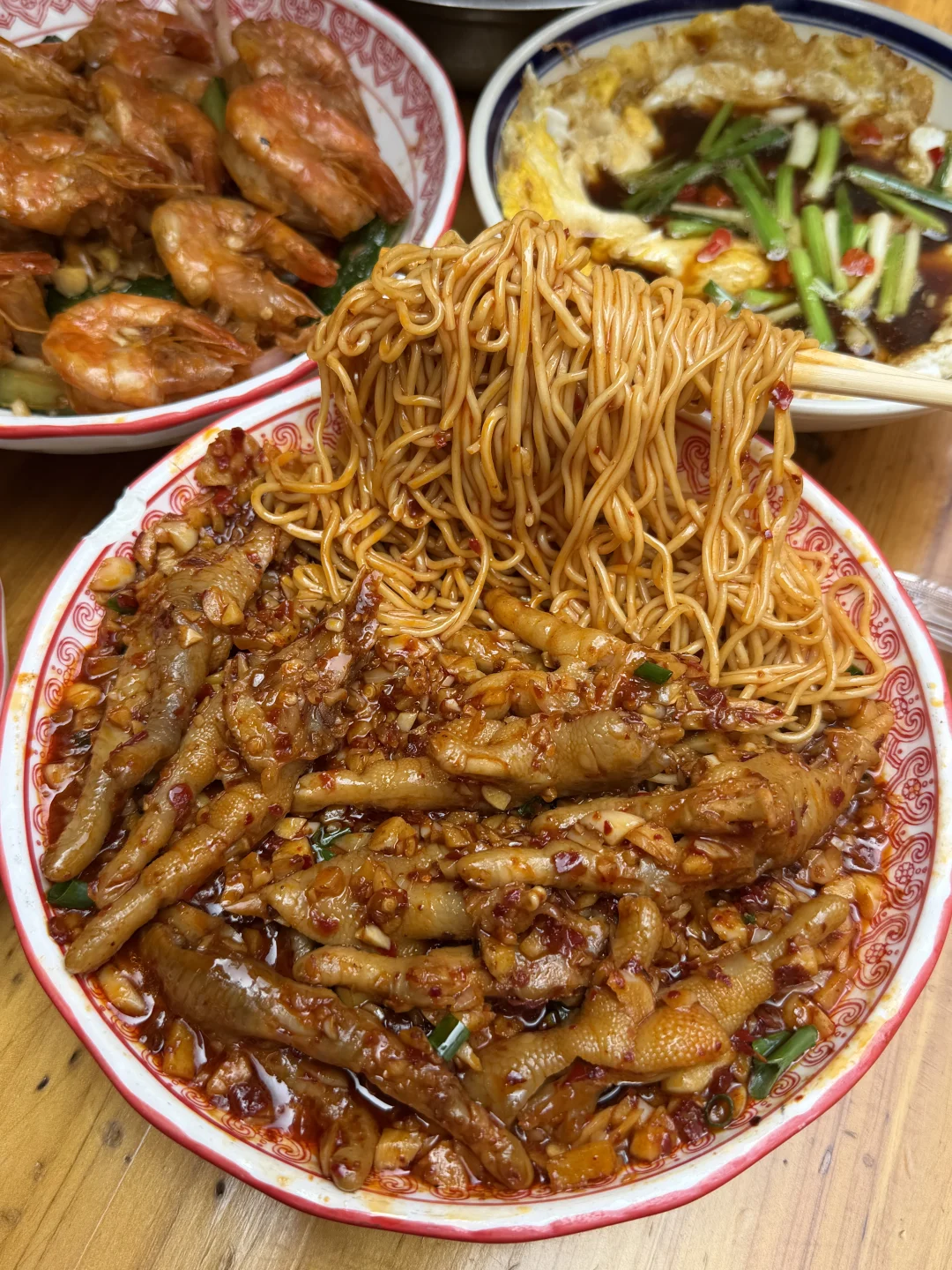 烧辣椒皮蛋拌面、兰花干子煨猪脚、蒜香鸡爪拌面。。每一个的是我爱的!!