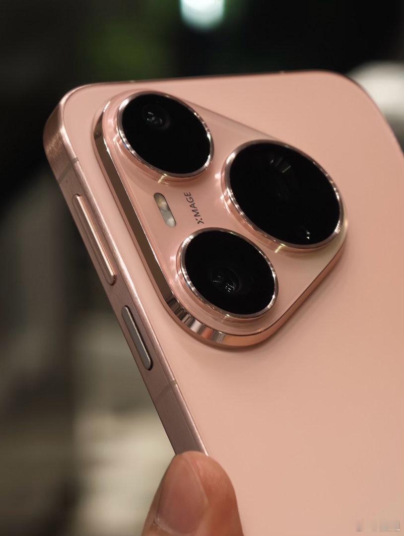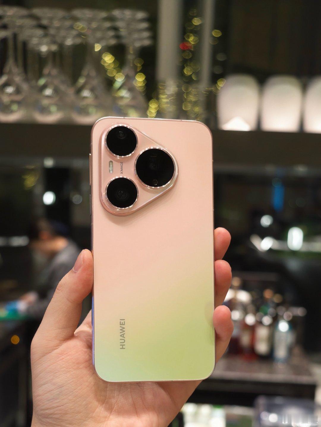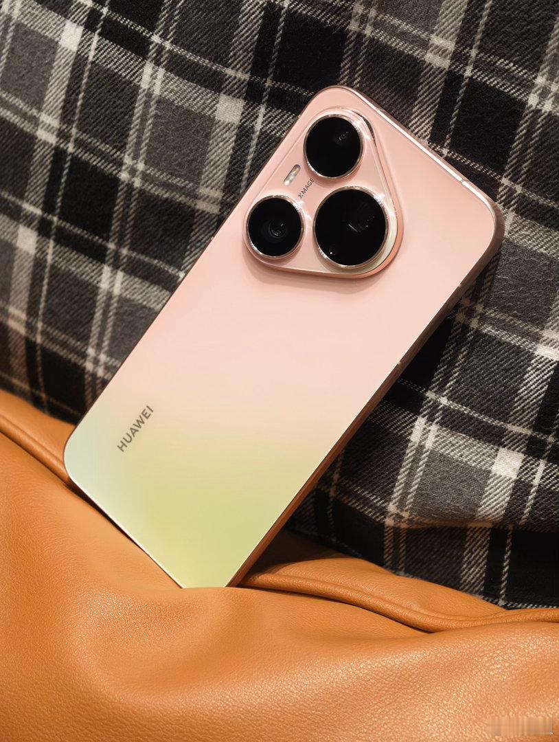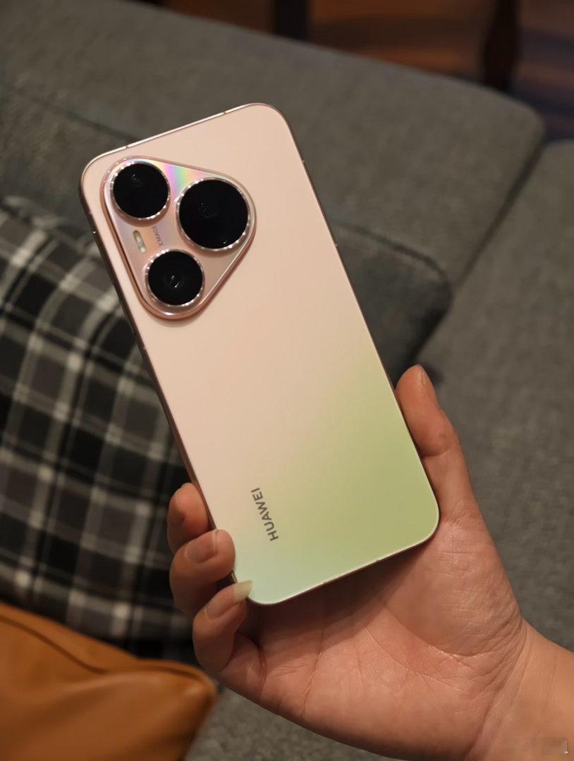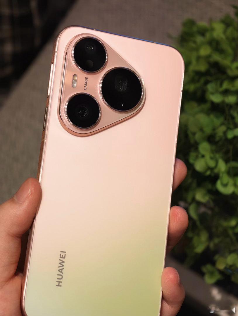 热乎的华为Pura90 Pro粉红芭乐配色,淡淡的粉色和清新的绿色搭配,更适合这